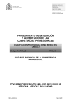 MINISTERIO DE EDUCACIÓN SECRETARÍA DE ESTADO DE EDUCACIÓN Y FORMACIÓN PROFESIONAL DIRECCIÓN GENERAL DE FORMACIÓN PROFESIONAL INSTITUTO NACIONAL DE LAS CUALIFICACIONES PROCEDIMIENTO DE EVALUACIÓN Y ACREDITACIÓN DE LAS COMPETENCIAS PROFESIONALES CUALIFICACIÓN PROFESIONAL: DOMA BÁSICA DEL CABALLO Código: AGA344_2 NIVEL: 2 GUÍAS DE EVIDENCIA DE LA COMPETENCIA PROFESIONAL (DOCUMENTO RESERVADO PARA USO EXCLUSIVO DE PERSONAL ASESOR Y EVALUADOR) GEC_AGA344_2 Hoja 1 de 80 GEC_AGA344_2 Hoja 2 de 80 ÍNDICE GENERAL ABREVIADO 1. Presentación de la Guía 4 2. Criterios generales para la utilización de las Guías de Evidencia 5 3. Guía de Evidencia de la UC1080_2: Dominar las técnicas básicas de monta a caballo 7 4. Guía de Evidencia de la UC1122_2: Desbravar potros 25 5. Guía de Evidencia de la UC1123_2: Domar potros a la cuerda 41 6. Guía de Evidencia de la UC1124_2: Realizar la monta inicial de potros 59 7. Glosario de términos utilizado en Doma básica del caballo 77 GEC_AGA344_2 Hoja 3 de 80 1. PRESENTACIÓN DE LA GUÍA Las Guías de Evidencia de las Unidades de Competencia, en su calidad de instrumentos de apoyo a la evaluación, se han elaborado con una estructura sencilla y un contenido adecuado a las finalidades a que deben contribuir, como son las de optimizar el procedimiento de evaluación, y coadyuvar al logro de los niveles requeridos en cuanto a validez, fiabilidad y homogeneidad, tanto en el desarrollo de los procesos como en los resultados mismos de la evaluación. Para ello, la elaboración de las Guías parte del referente de evaluación constituido por la Unidad de Competencia considerada (en adelante UC), si bien explicitando de otra manera sus elementos estructurales, en el convencimiento de que así se facilita la labor específica del personal asesor y evaluador. Hay que advertir que, en todo caso, se parte de un análisis previo y contextualización de la UC para llegar, mediante la aplicación de la correspondiente metodología, a la concreción de los citados elementos estructurales. En la línea señalada, se han desglosado las competencias profesionales de la UC en competencias técnicas y sociales. Las competencias técnicas aparecen desglosadas en el saber hacer y en el saber; y las sociales en el saber estar. Este conjunto de “saberes” constituyen las tres dimensiones más simples y clásicas de la competencia profesional. La dimensión relacionada con el saber hacer aparece explicitada en forma de actividades profesionales que subyacen en las realizaciones profesionales (RPs) y criterios de realización (CRs). Conviene destacar que la expresión formal de las actividades profesionales se ha realizado mediante un lenguaje similar al empleado por las y los trabajadores y el empresariado, de aquí su ventaja a la hora de desarrollar autoevaluaciones, o solicitar información complementaria a las empresas. La dimensión de la competencia relacionada con el saber, comprende el conjunto de conocimientos de carácter técnico sobre conceptos y procedimientos, se ha extraído del módulo formativo correspondiente a cada UC, si bien se ha reorganizado para su mejor utilidad, asociando a cada una de las actividades profesionales principales aquellos saberes que las soportan y, en su caso, creando un bloque transversal a todas ellas. En cuanto a la dimensión de la competencia relacionada con el saber estar, se han extraído, caso de existir, de las correspondientes RPs y CRs de la UC, en forma de capacidades de tipo actitudinal. GEC_AGA344_2 Hoja 4 de 80 Por último indicar que, del análisis previo de la UC y de su contexto profesional, se ha determinado el contexto crítico para la evaluación, cuya propiedad fundamental radica en que, vertido en las situaciones profesionales de evaluación, permite obtener resultados en la evaluación razonablemente transferibles a todas las situaciones profesionales que se pueden dar en el contexto profesional de la UC. Precisamente por esta importante propiedad, el contexto que subyace en las situaciones profesionales de evaluación se ha considerado también en la fase de asesoramiento, lográndose así una economía de recursos humanos, materiales y económicos en la evaluación de cada candidatura. 2. CRITERIOS GENERALES PARA LA UTILIZACIÓN DE LAS GUÍAS DE EVIDENCIA La estructura y contenido de esta “Guía de Evidencia de Competencia Profesional” (en adelante GEC) se basa en los siguientes criterios generales que deben tener en cuenta las Comisiones de Evaluación, el personal evaluador y el asesor. Primero.- Si las Comisiones de Evaluación deciden la aplicación de un método de evaluación mediante observación en el puesto de trabajo, el referente de evaluación que se utilice para valorar las evidencias de competencia generadas por las candidatas y candidatos, serán las realizaciones profesionales y criterios de realización de la UC de que se trate, en el contexto profesional que establece el apartado 1.2. de la correspondiente GEC. Segundo.- Si la Comisión de Evaluación apreciara la imposibilidad de aplicar la observación en el puesto de trabajo, esta GEC establece un marco flexible de evaluación –las situaciones profesionales de evaluación- para que ésta pueda realizarse en una situación de trabajo simulada, si así se decide por la citada Comisión. En este caso, para valorar las evidencias de competencia profesional generadas por las candidatas y candidatos, se utilizarán los criterios de evaluación del apartado 1.2. de la correspondiente GEC, formados por “criterios de mérito”; “indicadores”; “escalas de desempeño competente” y ponderaciones que subyacen en las mismas. Conviene señalar que los citados criterios de evaluación se extraen del análisis de las RPs y CRs de la UC de que se trate. Hay que destacar que la utilización de situaciones profesionales de evaluación (de las que las Comisiones de Evaluación podrán derivar pruebas profesionales), con sus criterios