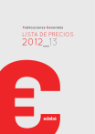 Publicaciones Generales LISTA DE PRECIOS 2012_13 ÍNDICE Edebé.................................................................................5 Edebé catalán...................................................................13 Rodeira............................................................................17 Marjal..............................................................................18 Giltza................................................................................19 4 4 Castellano CÓD. EAN TÍTULO S/IVA E BEBÉ C/IVA E CÓD. EAN TÍTULO S/IVA E C/IVA E 7843 9788423678433 TUPI Y LA BRUJA (letra manuscrita)......................................11,35 € 11,80 € DE COLORES BRILLANTES......................................................17,21 € 17,90 € 830377 9788468303772 EL LIBRO DEL BEBÉ.................................................................14,90 € 15,50 € 7848 9788423678488 TUPI EN LA GRANJA (letra de palo).......................................11,35 € 11,80 € 8421 9788423684212 TUPI ÉS MÚSICO (LETRA MANUSCRITA).............................11,35 € 11,80 € 830378 9788468303789 MIS AMIGOS DEL POLO .........................................................11,49 € 11,95 € 830379 9788468303796 MIS AMIGOS DE LA GRANJA .................................................11,49 € 11,95 € 830380 9788468303802 MIS AMIGOS DE LA SELVA.....................................................11,49 € 11,95 € 8700 9788423687008 TUPI VA AL MERCADO (letra manuscrita)..............................11,35 € 11,80 € 9276 9788423692767 EL PRIMER LIBRO DE COCINA TUPI.....................................17,31 € 18,00 € 9278 9788423692781 EL PRIMER ATLAS DE TUPI...................................................17,31 € 18,00 € 830718 9788468307183 MI PRIMERA ENCICLOPEDIA ESPAÑOL-INGLÉS LIBRO GUANTE TODOS NECESITAMOS 9936 9788423699360 UN AMIGO.................................................................................5,14 € 9937 9788423699377 UN ABRAZO...............................................................................5,14 € 5,35 € 5,35 € 99629788423699629 AMOR........................................................................................5,14 € 5,35 € 9963 9788423699636 UN BESO....................................................................................5,14 € 5,35 € 7849 9788423678495 TUPI EN LA GRANJA (letra manuscrita).................................11,35 € 11,80 € 8420 9788423684205 TUPI ÉS MÚSICO (LETRA DE PALO).....................................11,35 € 11,80 € 8701 9788423687015 TUPI VA AL MERCADO (letra de palo)...................................11,35 € 11,80 € 8730 9788423687305 EL PRIMER DICCIONARIO DE TUPI.......................................17,31 € 18,00 € 8813 9788423688135 MY FIRST ENGLISH DICTIONARY TUPI................................17,31 € 18,00 € 9622 9788423696222 CUERPO HUMANO TUPI.......................................................17,31 € 18,00 € EL DRAGÓN SIMÓN 6241 9788423662418 DRAGÓN SIMÓN Y LOS ESTORNUDOS..................................... 7,79 € 8,10 € 6377 9788423663774 SIMÓN Y EL LAGO DE CHOCOLATE.......................................... 7,79 € 8,10 € 98359788423698356 ¡ABRACADABRA!.......................................................................5,72 € 5,95 € 9979 9788423699797 EL DRAGÓN SIMÓN Y EL LOBO QUE NO DA MIEDO................. 7,79 € 8,10 € 9837 9788423698370 UN HALLOWEEN DIVERTIDO.....................................................5,72 € 5,95 € 9976 9788423699766 EL DRAGÓN SIMÓN Y EL HADA GOLOSA................................. 7,79 € 8,10 € 9839 9788423698394 TOUPIE DE CAPERUCITA ROJA.................................................5,72 € 5,95 € 830365 9788468303659 EL DRAGÓN SIMÓN Y EL GIGANTE CARASUCIA...................... 7,79 € 8,10 € 9841 9788423698417 ROBINSON TOUPIE ...................................................................5,72 € 5,95 € 830368 9788468303680 EL DRAGÓN SIMÓN Y LA GRAN COMPETICIÓN....................... 7,79 € 8,10 € 9843 9788423698431 NO TENGO SUEÑO....................................................................5,72 € 5,95 € 830729 9788468307299 EL DRAGÓN SIMÓN NO PUEDE DORMIR.................................. 7,79 € 8,10 € 9845 9788423698455 SÚPER TOUPIE..........................................................................5,72 € 5,95 € 830730 9788468307305 EL DRAGÓN SIMÓN YA NO SE HACE PIPÍ................................. 7,79 € 8,10 € TOUPIE Y BINOU POP UPS POP UPS 9422 9788423694228 REGALO INESPERADO.............................................................13,46 € 14,00 € 9266 9788423692668 ¡PUM-PAM CATAPLÁN!...........................................................13,46 € 14,00 € DAVID Y LAURA 9273 9788423692736 HOTEL PESADILLA................................................................... 13,46 € 14,00 € DESDE... HASTA... 7763 9788423677634 TU CUERPO DESDE LA CABEZA A LOS PIES............................ 8,56 € 8,90 € 7410 9788423674107 DAVID Y LAURA: VISITAN EL ZOO.............................................5,72 € 5,95 € 7764 9788423677641 LA FAMILIA DESDE EL PEQUEÑO AL MAYOR........................... 8,56 € 8,90 € 7411 9788423674114 DAVID Y LAURA: EN LA MONTAÑA...........................................5,72 € 5,95 € 7765 9788423677658 SENTIMIENTOS DE LA TRISTEZA A LA FELICIDAD................... 8,56 € 8,90 € 7412 9788423674121 DAVID Y LAURA: VAN AL PARQUE............................................5,72 € 5,95 € 7766 9788423677665 TUS AMIGOS DE ANTES Y DE AHORA....................................... 8,56 € 8,90 € 7474 9788423674749 DAVID Y LAURA: VAN A CASA DE LOS ABUELOS....................5,72 € 5,95 €€ 7767 9788423677672 EL MIEDO................................................................................... 8,56 € 8,90 € 3