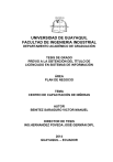 UNIVERSIDAD DE GUAYAQUIL FACULTAD DE INGENIERIA INDUSTRIAL DEPARTAMENTO ACADÉMICO DE GRADUACIÓN TESIS DE GRADO PREVIO A LA OBTENCIÓN DEL TÍTULO DE LICENCIADO EN SISTEMAS DE INFORMACIÓN ÁREA PLAN DE NEGOCIO TEMA CENTRO DE CAPACITACIÓN DE NIÑERAS AUTOR BENITEZ SARAGURO VICTOR MANUEL DIRECTOR DE TESIS ING.HERNANDEZ POVEDA JOSÉ GERMÁN DIPL 2014 GUAYAQUIL – ECUADOR ii “La responsabilidad de los hechos ideas y doctrinas expuestos en esta tesis corresponden exclusivamente al autor¨. Benítez Saraguro Víctor Manuel C.C. 092099764-0 iii DEDICATORIA El presente proyecto va dedicado en primer lugar a Dios, quien ha sido mi guía e inspiración para poder culminar mi meta en esta carrera. De la misma manera quiero dedicar todo mi trabajo a toda mi familia, a mis padres, hermanos, y a todos quienes con su amor y tolerancia han sabido ser la inspiración y guía para darme la fuerza para conseguir mis metas. iv AGRADECIMIENTO Quiero agradecer a todas las personas que hicieron posible la realización de este trabajo, en especial a mi tutor al Ing. José Hernández, quien me guio permanentemente en la realización de este proyecto. Finalmente, llevar a cabo esta tesis de grado no habría sido posible sin el apoyo incondicional de mis padres que cada día me entregan todo su amor y energía positiva, para la realización de este proyecto y todos mis emprendimientos. ÍNDICE GENERAL N° Descripción Pág. Prólogo 1 CAPITULO I INTRODUCCIÓN N° Descripción Pág. 1.1 Antecedentes. 2 1.2 Identificación del problema 3 1.2.1 Nombre de la empresa 3 1.2.2 Descripción del negocio 4 1.2 .3 Misión, visión 5 1.2.4 Objetivos, estrategias y metas 6 1.2.5 Valores 7 1.2.6 Tendencia del entorno nacional e internacional 8 1.3 Justificativos 9 1.3.1 Justificación 9 1.3.2 Delimitación 10 1.4 Objetivos de la investigación 10 1.4.1 Objetivo general 10 1.4.2 Objetivos específicos 10 CAPITULO II ANÁLISIS DE MERCADO Nº Descripción Pág. 2.1 Análisis político, económico, social y tecnológico 11 2.1.1 Análisis político 11 vi Nº. Descripción Pág. 2.1.2 Análisis económico 12 2.1.3 Análisis social 13 2.1.4 Análisis tecnológico 14 2.2 Análisis de la empresa 15 2.2.1 Análisis de valor 16 2.3 Matriz foda 16 2.3.1 Debilidades 16 2.3.2 Oportunidades 17 2.3.3 Fortalezas 17 2.3.4 Amenazas 18 2.3.5 Estrategias 18 2.3.6 Relación foda – estrategia 20 2.4 Ventaja diferencial del servicio 21 2.5 Análisis de mercado 22 2.5.1 Análisis de nuestro mercado meta. 22 2.5.1 Determinar el tamaño del mercado objetivo 22 2.5.3 Tamaño del mercado objetivo 23 2.5.4 Selección del tamaño de la muestra 23 2.5.5 Análisis de la competencia 25 2.6 Plan de mercadeo y estrategias de ventas 26 2.6.1 Objetivos del plan de mercadeo 28 2.6.2 Presentación y descripción del producto 28 2.6.2.1 Sitio web 29 2.6.2.1.1 Metodología de desarrollo 33 2.6.2.1.2 Estrategia de desarrollo 34 2.6.2.1.3 Implementación 34 2.6.2.2 Temario para la formación de niñeras 34 2.6.2.3 Características del temario 35 2.6.3 Estrategias de precio 39 2.6.4 Estrategias de comercialización 40 2.6.5 Estrategias de ventas 41 2.6.6 Estrategias de publicidad y promoción 41 2.6.7 Estrategias de distribución 42 vii CAPITULO III ANÁLISIS TÉCNICO Nº. Descripción Pág. 3.1 Cadena de valor del centro de capacitación de niñeras 44 3.1.1 Actividades primarias 45 3.1.1.1 Logística interna 45 3.1.1.2 Operaciones 45 3.1.1.2.1 Proceso de prestación del servicio 45 3.1.1.2.2 Esquema proceso tecnológico del negocio 46 3.1.1.2.3 Narrativa diagrama de flujo del proceso 48 3.1.1.2.4 Narrativa procesamiento del servicio solicitado 49 3.1.1.2.5 Narrativa del proceso del servicio prestado 52 3.1.1.3 Logística externa 53 3.1.1.4 Marketing y ventas 53 3.1.1.5 Servicios o post-venta 54 3.1.2 Descripción actividades de apoyo 54 3.1.2.1 Infraestructura 54 3.1.2.2 Gestión de personal 54 3.1.2.3 Tecnología 55 3.1.2.3.1 Proceso tecnológico 55 3.1.2.3.2 Hosting y ancho de banda 55 3.1.2.3.3 Dominio 56 3.1.2.4 57 Aprovisionamiento 3.1.2.4.1 Hardware 57 3.1.2.4.2 Software 58 3.1.2.4.3 Muebles y enseres 58 3.1.2.4.4 Otros equipos 58 3.2 Análisis técnico operativo 58 3.2.1 Servicio al cliente 58 3.2.2 Facturación 59 3.3 Cronograma de implementación 59 3.4 Diseño y distribución de la oficina 59 3.5 Localización geográfica 61 viii CAPITULO IV ANÁLISIS TÉCNICO Nº. Descripción Pág. 4.1 La empresa 62 4.2 Personal de la empresa 62 4.3 Estructura de la organización 63 4.3.1 Áreas y actividades 64 4.4 Descripción de cargos y funciones 65 4.5 Herramientas de control y desempeño 76 4.5.1 Evaluaciones de desempeño 76 4.5.1.1 Importancia de la evaluación del desempeño 76 4.5.1.2 Ventajas de la evaluación del desempeño 77 4.6 Plan de capacitación de la organización 77 4.7 Políticas de la organización 78 CAPITULO V ANÁLISIS LEGAL Y SOCIAL Nº Descripción Pág. 5.1 Aspectos legales 79 5.1.1 Procesos para la constitución de la compañía 79 5.1.1.1 Nombre de la compañía 80 5.1.1.2 Solicitud de aprobación. 80 5.1.1.3 Capital mínimo 80 5.1.1.4 Pasos para conformar una compañía en el Ecuador 81 5.1.1.4.1 Solicitante del nombre 81 5.1.1.4.2 Presentación de la minuta 81 5.1.1.4.3 Presentación del oficio 81 5.1.1.4.4 Elaboración de la escritura 82 5.1.1.4.5 Revisión de la escritura 82 5.1.1.4.6 Afiliación a la cámaras 82 5.1.1.4.7 Publicación en la prensa 84 ix Nº Descripción Pág. 5.2 Aspecto de la legislación 84 5.2.1 Patente de comercio 84 5.2.2 Registro mercantil 85 5.2.3 Presentación de documentos para la constitución 85 5.2.4 Aspectos laborales 85 5.3 Análisis social 86 5.4 Análisis ambiental 87 CAPITULO VI ANÁLISIS ECONÓMICO Y FINANCIERO Nº Descripción Pág. 6.1 Inversión 88 6.1.1 Inversión fija 88 6.1.2 Inversión diferida 90 6.1.3 Capital de operaciones 92 6.1.4 Inversión total 92 6.2 Financiamiento 93 6.3 Ingresos 95 6.3.1 Ingresos por venta 96 6.4 Gastos 96 6.4.1 Gastos administrativos 96 6.4.2 Gastos operativos 9