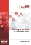 Estrategia Nacional De Gobierno Electrónico Lima, 06 de Julio de 2006 INDICE Presentación I Visión y Objetivo General ..................................................................... 2 II Necesidad de una definición de Estándares ....................................... 2 III Políticas Generales................................................................................ 2 IV Objetivos estratégicos .......................................................................... 3 IV.1 Objetivo Estratégico 1. ......................................................................... 3 IV.2 Objetivo Estratégico 2. ......................................................................... 4 IV.3 Objetivo Estratégico 3. ......................................................................... 5 IV.4 Objetivo Estratégico 4. ......................................................................... 5 IV.5 Objetivo Estratégico 5 .......................................................................... 6 V Factores Críticos de Éxito .................................................................... 6 2 PRESENTACIÓN La Oficina Nacional de Gobierno Electrónico e Informática, ONGEI, como agente de innovación tecnológica, tiene como objetivo propiciar de forma continua la transformación de las relaciones del Estado Peruano con empresas privadas, instituciones públicas y ciudadanos, mediante el uso efectivo de la tecnología de la información y comunicaciones, TICs, haciendo que cada institución pública se integre funcionalmente a una red de servicios transaccionales y de información que conlleven al bienestar general. Con relación a los servicios de información y a las iniciativas de Gobierno Electrónico, se promoverá el desarrollo de servicios que permitan acceder a los ciudadanos a información y a la posibilidad de realizar trámites proporcionados por diversas instituciones públicas, que de acuerdo a sus necesidades e intereses estén disponibles desde el Portal de Servicios al Ciudadano y Empresas, que a manera de punto de convergencia consolide información y servicios en Internet orientados a potenciar sus capacidades como ciudadanos, empresarios y/o funcionarios públicos, dichos servicios estarán basados en un enfoque de procesos que permitan la integración funcional e intercambio de información haciendo uso de un alto componente de tecnología que permitirá la disminución dramática de los tiempos de obtención de servicios y propicien así el mejor uso de recursos. Asimismo la ONGEI se deberá constituir en una instancia de encuentro con representantes de las instituciones públicas, universidades y el sector privado, con el fin de coordinar y potenciar los distintos esfuerzos tendientes a optimizar el aprovechamiento de las nuevas tecnologías aplicadas a la modernización de la gestión pública. La presente Estrategia se encuentra alineada al Plan de Desarrollo de la Sociedad de la Información, La Agenda Digital Peruana, aprobada mediante Decreto Supremo Nº 031-2006-PCM, que tiene carácter de mandatario para los Titulares de los Sectores y entidades públicas, quienes deben adoptar las medidas necesarias para su cumplimiento y ejecución. 1 Estrategia Nacional de Gobierno Electrónico I Visión y Objetivo General Visión Transformación de las relaciones del Estado Peruano con empresas privadas, instituciones públicas y ciudadanos, mediante el uso efectivo de la tecnología de la información y comunicaciones, haciendo que el Estado en su conjunto se organice, estableciendo una red de servicios transaccionales y de información acordes con las necesidades y demandas de la sociedad, y que conlleven al bienestar general Objetivo General Desarrollar capacidades y servicios de alta disponibilidad asociados a procesos, en los que participen una o más instituciones, y sean accedidos desde una ventanilla única de forma que permita reducir los tiempos de procesamiento de solicitudes, propicien el desarrollo de los ciudadanos, mejoren la competitividad institucional y la transparencia del Estado, mediante el uso intensivo de tecnología de Información y comunicaciones. II Necesidad de una definición de Estándares En el contexto actual del desarrollo de Gobierno Electrónico en el Perú, es necesario una definición de estándares básicos, para permitir la interoperabilidad de los sistemas dentro del sector público y con el sector privado, por tal motivo es necesario definirlos: Procesos de intercambio de información documentaria mediante medios digitales Interfases y esquemas de Intercambio de información mediante servicios de información (web services). Estándares metodológicos en gerencia de proyectos en tecnología y aplicación de políticas de seguridad de información, ciclo de desarrollo de software y modelamiento de procesos. Desarrollo de portales y administración de los contenidos institucionales y sitios web, mediante el uso de tecnologías que faciliten el intercambio de información. Tecnologías y componentes de arquitectura abierta y modular que permitan la interoperativilidad de aplicaciones de Gobierno Electrónico (protocolos, interfases, mensajes, estructura de datos, encriptación). III Políticas Generales Para el proceso de desarrollo del Gobierno Electrónico se han definido un conjunto de políticas, sobre las cuales se implementarán las acciones relacionadas al logro de objetivos asociados. Este conjunto de políticas son de aplicación dentro de lo que constituye la Ley Marco de Modernización de la Gestión del Estado, Ley 27658, y son consideradas dentro de lo alcances que constituyen las Políticas de Estado del Acuerdo Nacional. 2 Las políticas para el desarrollo del Gobierno Electrónico son las siguientes: 1. Acercar los servicios de información y/o servicios en línea, que proporcionan las instituciones públicas, a los ciudadanos, desarrollando proyectos estratégicos de Gobierno Electrónico que se consti