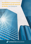 Ayudándote a proporcionar una experiencia de atención al cliente más inteligente Soluciones de buenas prácticas Durante dos décadas, Interactive Intelligence ha desarrollado mucha de la tecnología más innovadora para comunicaciones de negocios. Cloud, comunicaciones multicanal, comunicaciones móviles, análisis, atención al cliente en redes sociales, optimización de los equipos de trabajo, agentes remotos, automatización de procesos de negocio etc. Pero en el servicio a tus clientes, incluso la mejor tecnología tiene sus limitaciones. Para ayudarte a que nuestra tecnología trabaje en armonía con tus clientes, te proporcionamos un conocimiento a de nivel experto y una experiencia práctica de demostrada eficacia en todas las facetas de las comunicaciones y la atención al cliente. Te ayudamos a gestionar tu contact center, tus procesos de negocio, tus contenidos, y las comunicaciones de tu empresa de forma más inteligente. Con una solución creada a medida para tu negocio y tus clientes, te ayudamos a convertir la experiencia de la atención al cliente en un arma competitiva. Facilita a tus clientes diferentes opciones y tipos de canal para que contacten contigo. Proporciona a tus empleados acceso inmediato a la información y documentos para que respondan mejor y más rápido a tus clientes. Ofrece la posibilidad de autoservicio que permita a tus clientes completar transacciones sin frustrarse. Cada cliente es único. El servicio que proporcionas debería ser también único. Contact Center La velocidad, la flexibilidad y la frecuencia en los contactos con los clientes están desempeñando cada vez un papel más importante dentro del concepto de Gestión de la Experiencia del Cliente. Los clientes desean contactar con las compañías de forma rápida y fácil, con la flexibilidad de disponer de la opción de decidir cuándo y cómo hacerlo. Mediante una plataforma integrada llamada Customer Interaction Center (CIC), las compañías tendrán la posibilidad de gestionar tanto las interacciones entrantes como las salientes a través de varios canales; podrán manejar y enrutar todo tipo de interacciones y encolarlas, utilizar su reporting en tiempo real e histórico así como sus instrumentos de gestión. De esta forma, el contact center responderá de manera óptima a las necesidades de los clientes y garantizará de forma continuada el nivel de servicio solicitado. CIC también ofrece un valor extra añadido en lo que respecta a redes sociales. Las actividades en las redes sociales con un cierto sentimiento hacia su producto o negocio puede ser seguido de una forma profesional, consiguiendo al mejor empleado que se pueda encargar de ese trabajo y permitiéndole ponerse en contacto directamente con la persona que ha escrito el post. Comunicaciones Unificadas Además CIC, es una innovadora solución de comunicaciones unificadas; su escalable y flexible funcionalidad de mensajería y comunicaciones puede habilitarse dentro de cada empresa. Los empleados pueden organizar allí donde trabajen, su disponibilidad mediante el enrutamiento basado en reglas seleccionables. Este es el concepto ‘gestión de presencia’, que significa que los usuarios pueden comunicar su disponibilidad y canal de comunicación. Las plataformas, basadas en estándares abiertos, combinan no sólo las comunicaciones corporativas sino las de toda la empresa, incluyendo el contact center y todos los trabajadores móviles y remotos. Por supuesto el teletrabajo está plenamente soportado por CIC. En definitiva, las organizaciones obtendrán con CIC una plataforma altamente innovadora, con la que marcar la diferencia y que es una alternativa excelente a la los sistemas multipunto complejos orientados al hardware. Automatización de Procesos Cada vez más empresas van a mirar más allá de la automatización de su call center y querrán ser capaces de aplicar los mismos principios también en los demás procesos de su negocio, que a menudo cuestan tanto tiempo y dinero. A través del módulo Interaction Porcess Automation (IPA), Interactive Intelligence ofrece una solución para automatizar la inteligencia (human oriented) de los procesos de negocios, con los que la gente podrá tarabajar también de forma eficiente en el back-office. Además de llamadas telefónicas, correos electrónicos, webchats, tweets, etc. Ahora también las tareas (como parte del proceso) pueden ser enrutadas de forma eficiente y gestionadas a través de reglas de negocio predeterminadas. El negocio del contact center ha invertido mucho en la automatización y optimización de las interacciones durante los últimos años; ahora es el momento de obtener los mismos resultados y eficiencias en el back-office. Automatiza cualquier proceso de negocio y prioriza, enruta, escala y monitoriza el trabajo en todos los paso del proceso. Una única plataforma para todo tipo de comunicaciones El poder de Interactive Inetlligence está en el hecho de que ofrece a las organizaciones una solución total, completa y flexible con Customer Interaction Center (CIC). Además, Interactive Intelligence está constantemente innovando al nivel más alto, por tanto siempre ofrecerá nuevas y mejores soluciones para las necesidades futuras del mercado. Adaptable, para todo tipo de usuarios y para ofrecer un servicio flexible • Capacidad de gestión de comunicaciones multi-canal como telefonía, fax, email y chat. • Posibilidad de añadir aplicaciones y usuarios en cualquier momento a través de licencias. • Amplia capacidad de integración con sistemas de negocio y dispositivos de usuario final. • Una única plataforma para las organizaciones con diversas oficinas y para la gestión de la movilidad de los usuarios. Arquitectura basada sólo en software, para facilitar la administración • Elimina la complejidad de tener diversos dispositivos hardware en la red; sólo gestión de servidores. • Punto único de administración, personalización y repor