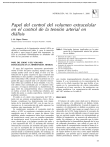 Documento descargado de http://www.revistanefrologia.com el 18/11/2016. Copia para uso personal, se prohíbe la transmisión de este documento por cualquier medio o formato. NEFROLOGÍA. Vol. XX. Suplemento 1. 2000 Papel del control del volumen extracelular en el control de la tensión arterial en diálisis J. M. López Gómez Hospital General Universitario «Gregorio Marañón». Madrid. La patogenia de la hipertensión arterial (HTA) en diálisis es multifactorial (tabla I), pero la retención de sodio y agua juega el papel más importante. La HTA se encuentra habitualmente en alrededor del 80% de los pacientes en diálisis. PAPEL DEL SODIO Y DEL VOLUMEN EXTRACELULAR EN LA HIPERTENSIÓN ARTERIAL El agua del organismo representa aproximadamente el 60% del peso corporal, aunque este porcentaje puede variar con la edad, el sexo y la distribución de la grasa corporal. El agua corporal está distribuida en dos grandes compartimentos: el volumen intracelular (VIC) donde se encuentran las 2/3 partes del agua corporal total y el volumen extracelular (VEC) que contiene el tercio restante. A su vez, este último está constituido por el volumen intravascular y el espacio intersticial. La transferencia de agua entre los compartimentos intra y extracelular se realiza a través de las membranas celulares, por medio de poros y canales específicos, merced a un gradiente osmótico. El sodio es el catión más importante del VEC y junto con sus aniones acompañantes, cloro y bicarbonato, constituyen los determinantes más importantes de la tonicidad del VEC, con lo que las variaciones en la concentración de sodio suponen los cambios más importantes del VEC. En condiciones normales, el contenido total de sodio y el VEC se mantienen constantes gracias a la regulación que el riñón es capaz de ejercer. Este equilibrio puede mantenerse hasta fases avanzadas de insuficiencia renal, pero en estadios terminales de insuficiencia renal, la excreción de sodio disminuye, dando lugar a un balance positivo de sodio y a una expansión del VEC. El aumento del volumen intravascular ocasiona un aumento del gasto cardíaco, que se acompaña de un descenso de las resistencias vasculares periféricas, con lo que la tensión arterial tiende a mantenerse estable. Sin embargo, en pacientes hipertensos en diálisis, este mecanismo de adaptación no se produce. A ello también contribu- Tabla I. Principales factores implicados en la patogenia de la hipertensión arterial de pacientes en diálisis • • • • • • • • Retención de sodio y agua. Estimulación del sistema renina-angiotensina-aldosterona. Estimulación del sistema adrenérgico. Disminución de sustancias vasopresoras dependientes del endotelio (Oxido nítrico). Aumento de sustancias vasoconstrictoras dependientes del endotelio (endotelina). Uso de Eritropoyetina. Aumento del calcio citosólico. Alteraciones estructurales de la pared arterial. yen niveles inapropiadamente elevados de angiotensina II y un incremento en la concentración de sodio en la célula muscular lisa que facilita el aumento en la concentración de calcio intracelular, elevando así el tono vascular y las resistencias vasculares periféricas. Las consecuencias del aumento del VEC señalan en la tabla II. PESO SECO El balance de sodio viene dado por la diferencia entre la ingesta y la eliminación en diálisis, fundamentalmente por ultrafiltración. Cuando la ingesta es superior a la eliminación en diálisis se produce una expansión del VEC que juega un papel clave en el desarrollo de la HTA. Surge entonces el concepto de peso seco, que ha sido definido como el menor peso que un paciente puede tolerar sin sintomatología en diálisis ni hipotensión, en ausencia de sobrecarga líquida. Sin embargo, es bien conocido que la máxima ultrafiltración en hemodiálisis depende de la tasa de rellenado plasmático, que refleja el paso de líquido desde el compartimento intersticial hasta el intravascular y que puede variar con las características de la sesión de hemodiálisis. En este sentido, el grupo de Tassim define el peso seco como aquel obtenido postdiálisis, que permite que la tensión arterial prediálisis permanezca normal (< 130/80 mmHg) inde45 Documento descargado de http://www.revistanefrologia.com el 18/11/2016. Copia para uso personal, se prohíbe la transmisión de este documento por cualquier medio o formato. J. M. LÓPEZ GÓMEZ Tabla II. Problemas asociados al aumento del volumen extracelular • • • • • • • • • Hipertensión arterial. Accidente cerebro-vascular agudo. Hipertrofia de ventrículo izquierdo. Cardiopatía isquémica. Insuficiencia cardíaca congestiva. Disfunción diastólica. Muerte súbita. Intolerancia a ultrafiltración. Mayor mortalidad. pendientemente de la ganancia de peso interdiálisis y sin necesidad de medicación antihipertensiva. Es por tanto una realidad que la mayor parte de los pacientes que actualmente están en hemodiálisis presentan una situación crónica de sobrecarga líquida, que condiciona una alta prevalencia de HTA. Actualmente, más de las 2/3 partes de la población que está en hemodiálisis están hipertensos, lo que refleja un alto grado de error en la apreciación del peso seco de los pacientes. DETERMINACIÓN DEL PESO SECO Es evidente que una adecuada estimación del peso seco en diálisis es de importancia crítica. Sin embargo, que hasta la actualidad y a pesar de los grandes avances experimentados en la tecnología aplicada a la diálisis, no existe un procedimiento preciso para su determinación. En la gran mayoría de las unidades de diálisis, la determinación más habitual del peso seco es de tipo clínico, valorando la presencia de edemas, cefaleas e HTA fundamentalmente. Sin embargo, en los últimos años, se han descrito distintos procedimientos para su determinación que pueden ayudar de forma importante a la valoración del estado de hidratación del paciente en diálisis (tabla III). Lo