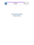 GUÍA INFLUENZA CÓDIGO G-SA-XX VERSIÓN 1 VIGENCIA 01/10/2008 PÁGINA 1 de 9 GUÍA INFLUENZA CÓDIGO G-SA-XX VERSIÓN 1 VIGENCIA 01/10/2008 PÁGINA 2 de 9 TABLA DE CONTENIDO Pág. GUÍA INFLUENZA CÓDIGO G-SA-XX VERSIÓN 1 VIGENCIA 01/10/2008 PÁGINA 3 de 9 DEFINICION Influenza o gripe es una infección respiratoria aguda causada por el virus de la influenza tipo A o B. En la actualidad están en circulación dos subtipos antigénicos de virus influenza tipo A, H1N1 y H3N2. En la mayoría de los casos es una enfermedad de moderada gravedad que se transmite de persona a persona por secreciones nasales o por la tos. CÓDIGOS CIE 10: DIAGNÓSTICO CÓDIGO Rinofaringitis aguda [resfriado común] Influenza debida a virus de la influenza identificado Influenza con neumonía, debida a virus de la influenza identificado Influenza con otras manifestaciones respiratorias, debida a virus de la influenza identificado Influenza, con otras manifestaciones, debida a virus de la influenza identificado Influenza con neumonía, virus no identificado Influenza con otras manifestaciones, virus no identificado J00X J10X J100 J101 Infección aguda no especificada de las vías respiratorias inferiores J22X Faringitis aguda, no especificada J029 Bronquiolitis aguda, no especificada Enteritis debida a adenovirus Otras enteritis virales J219 A082 A083 Infección intestinal viral, sin otra especificación A084 J108 J110 J118 FACTORES DE RIESGO La influenza aparece en brotes epidémicos relacionados con las estaciones o con los cambios en el clima. En Colombia aparece relacionada con la época de lluvia. La prevalencia de la infección es más alta en niños de edad escolar. Las personas con alto riesgo de padecer enfermedad grave y complicaciones son los individuos mayores de 65 años, aquellos con EPOC, insuficiencia cardiaca congestiva y falla renal. GUÍA CÓDIGO INFLUENZA G-SA-XX VERSIÓN 1 VIGENCIA 01/10/2008 PÁGINA 4 de 9 MANIFESTACIONES CLÍNICAS El período de incubación es de 48 horas después del contagio. Los síntomas más frecuentes son fiebre, tos, dolor de garganta, cefalea, mialgias y malestar general pronunciado. El comienzo es brusco con instauración rápida del cuadro. La temperatura se eleva rápidamente durante las primeras 24 horas. Puede haber síntomas oculares como dolor, fotofobia y ardor en los ojos. La mayoría de los pacientes se recupera completamente en una semana. A veces persiste algún síntoma residual, tos o astenia, durante 2-3 semanas. En el examen físico no suelen encontrarse signos de enfermedad aparte de congestión faríngea, rinorrea acuosa y algo de fiebre. No hay hallazgos que se consideren específicos de influenza. El diagnóstico es clínico en 80% de los casos. La tos y la fiebre son los síntomas que mayor correlación tienen con el diagnóstico apropiado de la enfermedad. El valor predictivo positivo de la asociación de tos y fiebre durante un período conocido de influenza es de 79%. La fortaleza de esta asociación aumenta cuando el nivel de la fiebre se hace más alto. EXAMENES PARACLÍNICOS Las pruebas regulares de laboratorio no son específicas de influenza. DIAGNOSTICO DIFERENCIAL En la práctica diaria la infección vírica por virus gripal u otros virus respiratorios (Adenovirus, VSR, Rhinovirus, Enterovirus,) puede ser muy difícil de diferenciar clínicamente. Además todos pueden coexistir en el mismo periodo, sin embargo en todos ellos debemos tomar la misma actitud terapéutica (cuadro 1). Cuadro 1. Cuadros infecciosos a diferenciar. EPIDEMIOLOGÍA Adenovirus Se presentan durante todo el año y con cierta frecuencia se observan brotes de infección intrahospitalaria. CUADRO CLÍNICO PARACLÍNICOS MANEJO Cursa con fiebre alta persistente y produce infecciones respiratorias altas, faringitis (serotipos 1, 2, 3, 5, 7), síndrome coqueluchoide, neumonías, las cuales se El hemograma sugiere infección viral en el 70% de los casos. La radiografía de tórax presenta formas progresivas bilaterales y multifocales que en El tratamiento es sintomático, no se ha demostrado que los corticoides sean benéficos y no se dispone de vacunas, pues algunas están en fase de COMPLICACIONES La infección por adenovirus se ha asociado a importantes secuelas pulmonares tales como hiperreactividad bronquial, atelectasias, bronquiectasias, GUÍA CÓDIGO INFLUENZA G-SA-XX VERSIÓN 1 VIGENCIA 01/10/2008 PÁGINA 5 de 9 Virus respiratorio sincitial Es una importante causa de enfermedad en niños, responsable del 15% de todos los casos de enfermedad respiratoria superior leve y del 45% de enfermedad del tracto respiratorio inferior. Ocurre con más frecuencia en invierno. La transmisión es por gotas de aerosol suspendidas en el aire, por contacto mano a mano en las cuales puede sobrevivir por 30 minutos, o secreciones infectadas. La enfermedad es altamente contagiosa. caracterizan por progresión de la enfermedad a pesar de tratamiento antibiótico. ocasiones semejan a una infección bacteriana, atrapamiento de aire, reducción secundaria del flujo sanguíneo pulmonar, e inflamación de vasos sanguíneos. A veces se observa sintomatología desproporcionada a las alteraciones observadas en la radiografía. experimentación. bronquiolitis obliterante, fibrosis intersticial y síndrome de pulmón hiperlúcido (SwyerJames). En los adultos la enfermedad es leve y limitada al tracto respiratorio superior y rara vez produce neumonía. Existe una pobre correlación entre la severidad de los síntomas y la apariencia radiológica, que tiene los siguientes hallazgos: el patrón de engrosamiento de paredes bronquiales, infiltrados peribronquiales, infiltrados bronco neumónicos en parches, atrapamiento aéreo, e infiltrado intersticial pulmonar. En el tratamiento se utilizan medidas de soporte de acuerdo a cómo se manifieste el virus; la mayoría de los pequeños con virus sincitial no se hospitalizan y los que requieren hospitalización son los que presentan complicaciones. Se ind