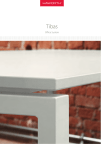 Tibas Office System Natural simplicity 02 | El sistema de mesas Tibas destaca por su diseño sencillo y sus líneas naturales y bien cinceladas. Tibas no es intrusivo, sino deliberadamente discreto y honesto. El tablero parece flotar ligera y elegantemente sobre la robusta estructura, permitiendo su integración armoniosa en cualquier entorno. The Tibas desk system is remarkable for its clear design and sculptured, natural lines. Tibas is not obtrusive but deliberately discreet and honest. The desk top appears to float gently and elegantly over the sturdy frame and can be integrated harmoniously into any setting. Design: Haworth Design Studio | 03 Las tendencias van y vienen, pero Tibas siempre permanece. Ésta es la máxima a partir de la cual se diseñó el sistema. Tibas es también el pionero de una nueva generación de mobiliario de oficina que seguirá destacando en el futuro por sus características ecológicas y económicas. Trends may come and trends may go but Tibas will always remain – this is the maxim by which the desk system was designed. Similarly, the desk system can be seen as the pioneer of a new generation of office furniture that will continue to stand out in the future for its ecological and economic features. 04 | Timeless appeal | 05 Tibas es a la vez funcional y estético, y permite su integración en un amplio espectro de entornos de trabajo. El sistema no sólo satisface todos los estándares de mobiliario de oficina, sino que también combina a la perfección con cualquier elemento adicional, como paneles, bloques o sillas giratorias. 06 | Aesthetic functionality Tibas is both functional and striking and can be integrated into a wide range of work environments. The desk system not only complies with all applicable office standards, but it can be combined at will with any number of additional elements, such as screen panels, pedestals or swivel chairs. | 07 08 | Creative freedom Tibas ofrece nuevas posibilidades creativas tanto en espacios de reunión como en puestos operativos. Presenta significativos detalles de diseño como, por ejemplo, un pórtico compartido por varios tableros, que permite ahorrar costes y mejora la estética visual de la solución. Tibas is more than just a workstation, it offers new creative scope for meeting tables too. It features several impressive design details, for instance, a single frame side can accommodate two desk tops, which saves costs and enhances the overall visual effect. | 09 Seamless integration 10 | Cuando se trata de configuraciones de oficina integradas, Tibas es un perfecto compañero de equipo que combina a la perfección con muchos otros productos Haworth, como el sistema de armarios Vados, las lámparas LIM o las sillas de trabajo Very Task. Una vez más, la lógica de diseño de Haworth tiene como resultado un atractivo concepto global. When it comes to integrated office layouts, Tibas is a real team player and can be seamlessly combined with many other Haworth products, such as the Vados cabinet system, the LIM light or the Very Task swivel chair series. Once again, Haworth’s design logic results in an attractive overall concept. | 11 Features 1 2 3 4 5 6 9 7 1 2 3 4 5 6 7 8 9 10 11 12 13 14 12 | 8 Escala de altura en la pata / Height scale on the leg Panel fijado a estructura de mesa / Screen mount fixed to desk frame Ala fijada a la viga / Extension desks attached to beam Subida vertical de cableado / Vertical cable duct Tablero deslizante de serie / Sliding desktop as standard Bandeja de cableado abatible en ambos sentidos / Cable tray hinged on both sides Bandeja de cableado de rejilla / Wire cable tray Bandeja de cableado metálica / Metal cable tray Soporte de CPU ajustable en ancho: 17-22.5 cm / Adjustable width CPU holder: 17–22.5 cm Faldón / Modesty panel Tornillo para el ajuste en altura: 62-86 cm / Screw adjuster for height: 62– 86 cm Escala de altura en la pata / Level set by height adjustor Panel Universal Screens / Universal Screens Salida de cables / Various cable outlets and fittings 13 14 10 11 12 | 13 Sustainability Sosteniblidad Todos los productos Haworth están diseñados para su uso a largo plazo y satisfacen los más altos estándares de seguridad y calidad. La sostenibilidad es una parte integral de nuestra cultura corporativa. Por eso, aceptamos nuestra responsabilidad durante el ciclo de vida completo de nuestros productos. Comenzando por la fase de desarrollo de producto, e incorporando la optimización de recursos materiales y de procesos de fabricación, así como procedimientos logísticos y de embalaje que minimizan el consumo de energía. Este enfoque se extiende hasta el final de la vida útil del producto, en lo referente a la reutilización y reciclaje del mismo. All Haworth products are designed for long-term use and fulfil the highest standards of safety and quality. Sustainability is an integral part of our company culture. This is why we accept our responsibility for the entire duration of our products’ service life. Beginning with the product development phase, and incorporating optimisation of material resources and manufacturing processes, as well as environmentally and energy-friendly packaging and logistics procedures. It also extends beyond this to sustainable and resource-conserving reconditioning or recycling of the disposed product. During the implementation we closely work together with our stakeholders. Desarrollo - Cuidadosa selección de materiales - Altos porcentajes de material reciclado - No contiene sustancias peligrosas - Tableros de calidad certificada E1 - Madera certificada PEFC Producción - Plantas europeas certificadas ISO 9001, 14001 y 18001 - Procesos económicos y con bajos niveles de emisiones - Empleo de maquinaria con la última tecnología, que reducen los tiempos de producción - Procesos de trabajo y cadenas de producción optimizados - Sistema de calefacción de planta alimentado con recortes de tableros sobrantes - Optimizació