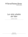 Las siete edades del líder por Warren G. Bennis Enero 2004 Reimpresión r0401d-e Cada etapa del liderazgo trae nuevas crisis y desafíos. Son angustiantes, pero saber qué le espera puede ayudarle a abrirse paso. Las siete edades del líder por Warren G. Bennis M i incursión inicial en el liderazgo ocurrió durante la Segunda Guerra Mundial. Era teniente de infantería, tenía 19 años y estaba muerto de miedo. Mis órdenes eran asumir el comando de un pelotón en el frente en Bélgica. Llegué en medio de la noche, cuando la mayoría de los hombres estaba durmiendo. El pelotón se había instalado en los escombros de una casa bombardeada. Un mensajero me llevó a la cocina y me ofreció un banco para dormir. Pero puse mi saco de dormir en el suelo, junto al resto de los hombres. No dormí nada. Me quedé despierto toda la noche, escuchando las bombas estallar. Era inmaduro y sabía muy poco sobre el mando, o sobre el mundo para tales efectos. Cuando los otros en el cuarto comenzaron a moverse, escuché que un sargento le preguntaba a otro, “¿quién es éste?”, y la respuesta de “es nuestro nuevo líder de pelotón”. Entonces el sargento dijo: “Bien. Podemos usarlo”. Sin darme cuenta, sin siquiera saber qué era lo correcto de hacer, hice una buena primera jugada. Mi llegada había sido de bajo perfil. No llegué haciendo alardes de mi nueva misión De hecho, fingí estar dormido en el suelo. Así, sin llamar la atención sobre mí, aprendí algo importante sobre los hombres que iba a liderar. Supe que ellos me necesitaban, o al menos que necesitaban a esa persona que ellos posteriormente me enseñaron a ser. Y vaya que me enseñaron. Durante las siguientes semanas en Bélgica, mis hombres --que ya habían estado en combate-- me mantuvieron vivo. También me enseñaron a liderar, muchas veces con su ejemplo. El sargento que me había recibido con aprobación se convirtió en mi seguro de vida al enseñarme técnicas tan esenciales como avanzar en una zona de guerra sin volar por los aires. Aunque pocos líderes necesitan preocuparse por volar en pedazos, mi vivencia en Bélgica fue en muchos sentidos típica de la primera experiencia de liderazgo en cualquier lugar. Llegaba a una organización donde las emociones estaban a flor de piel, las relaciones ya se habían entablado y los miembros de la organización Copyright ©2004 Harvard Business School Publishing Corporation. All rights reserved. Todos los derechos reservados. 3 La s s i e t e e d a d e s d e l l í d e r tenían expectativas sobre mí de las que no estaba todavía totalmente consciente. Mis nuevos subordinados me observaban para ver si iba a estar a la altura de las circunstancias y cómo lo haría. Todo nuevo líder enfrenta recelos, percepciones erradas, y las necesidades y agendas personales de cada uno de los que va a dirigir. Subestimar la importancia del primer movimiento es invitar al desastre. La entrada crucial es una de varias etapas –cada una con su elemento de crisis personal– por la que el líder debe transitar en algún momento de su carrera. Las escuelas de negocios no lo preparan para estas crisis, que pueden ser muy angustiantes. Pero también ofrecen poderosas lecciones. Shakespeare, que parece haber aprendido nuevas cosas cada vez que lo leo, hablaba de las siete edades del hombre. La vida de un líder también tiene siete edades y, de muchas maneras, son paralelas a las que Shakespeare describe en Como gustéis. Para parafrasear, estas etapas pueden ser descritas como infante, escolar, amante, soldado, general, estadista y sabio. Una forma de aprender sobre liderazgo es mirar cada una de estas etapas de desarrollo, así como los temas y crisis que suelen conllevar. No puedo ofrecer consejos sobre cómo evitar estas crisis, porque muchas son inevitables. Tampoco recomendaría necesariamente que las evite, ya que lidiar con los desafíos de cada etapa lo prepara para la siguiente. Pero saber lo que le espera puede ayudar al líder a sobrevivir y, con suerte, salir fortalecido y más seguro de sí mismo. Veamos primero al líder en sus albores, el infante de Shakespeare que “lloriquea… en los brazos de la nodriza”. El ejecutivo infante Para el o la joven a punto de convertirse en líder, el mundo que se presenta por delante es un lugar misterioso, incluso atemorizante. Pocos recurren al llanto, pero muchos quisieran tener el equivalente corporativo de una nodriza, alguien que los ayude a resolver problemas y aliviar las transiciones dolorosas. En vez de ello, el líder neófito afortunado tiene un mentor, un concepto que tiene su origen en la mitología griega. Cuando Odiseo estaba a punto de ir a la guerra, la diosa Atenea creó a Mentor para cuidar al amado hijo del héroe, Telémaco. El hecho de que Mentor tuviera atributos tanto masculinos como femeninos entrega una señal acerca de la riqueza y complejidad de la relación, sugiriendo un lazo más profundo que el de profesor y estudiante. Por desgracia, en el mundo real los dioses no intervienen y los mentores raramente se materializan por sí solos. Aunque la creencia popular es que los mentores buscan a los más jóvenes para incentivarlos y abogar por ellos, el hecho es que a menudo sucede lo contrario. Generalmente los mejores mentores se reclutan, y una característica de un futuro líder es la habilidad de identificar, cortejar y ganarse a los mentores que cambiarán su vida. Cuando Robert Thomas y yo entrevistamos a dos generaciones de líderes para nuestro libro Geeks and Geezers, conocimos a un extraordinario joven empresario de bienes raíces e Internet, Michael Klein, que había reclutado a su primer mentor cuando tenía sólo cuatro o cinco años. Robert y yo describimos su historia en el artículo HBR “Crucibles of Leadership” de septiembre de 2002. Su guía fue su abuelo Max Klein, que fue el responsable por la euforia de pintar siguiendo los números que en los años 50 y 60 arrasó en Estados Unidos. La moda