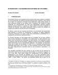 INTEGRACION Y VULNERABILIDAD EXTERNA EN COLOMBIA. Cristina Fernández1 I. Andrés González1 INTRODUCCION El presente artículo busca establecer las primeras bases para analizar la viabilidad de una coordinación de políticas macroeconómicas entre Colombia y otros países de la región. En particular, el trabajo busca determinar cuáles países tienen un ciclo económico similar al de nuestro país y establecer las causas de estas similitudes. El esclarecimiento de estos dos interrogantes permitirá anticipar algunos choques externos y suavizar su efecto sobre la economía mediante un conjunto de políticas, que puede evolucionar hasta el punto de constituir un programa de políticas macroeconómicas coordinadas. En efecto, a pesar de que nuestras economías no se encuentren aún preparadas para enfrentar un proceso de coordinación de políticas, la rápida integración comercial y financiera en la región, puede hacer insostenible su estabilidad sin un programa de coordinación macroeconómica. El principal resultado de este trabajo está en el hallazgo de una gran similitud entre el ciclo colombiano, el brasileño y el costarricense. La alta correlación que existe entre los términos de intercambio de estos países y los moderados niveles de comercio entre las tres economías2, sugieren el hecho de que estas similitudes están relacionadas con las exportaciones cafeteras3. Sin embargo, es importante anotar que a partir de los setenta, el café no es un producto particularmente importante para Brasil y por lo tanto, se hace necesario encontrar otras causas que estén determinando la similitud entre el ciclo económico colombiano y el brasileño. Otro resultado importante de este estudio es que el efecto de los términos de intercambio sobre las tres economías seleccionadas se encuentra rezagado en uno o dos años. Este hecho puede ser consecuencia de las políticas de esterilización y los controles de capitales, que en el caso colombiano fueron ampliamente utilizados para enfrentar las bonanzas cafeteras (Barrera y Cárdenas (1997) y Uribe (1994)). Por último, es importante anotar que a partir de los 1 Investigadores del Banco de la República. Las opiniones expresadas en este artículo son responsabilidad de los autores y no comprometen a la Institución. Se agradecen los comentarios de Mauricio Cárdenas, Carlos Felipe Jaramillo, Norman Loayza, Carlos Esteban Posada y los asistentes al seminario del CEMLA y del DNP. 2 Las exportaciones interregionales no sobrepasan el 3% promedio en ninguno de los casos. 3 La similitud entre el ciclo colombiano y el costarricense como consecuencia de los precios del café ya había sido anotada anteriormente por Cárdenas (1991). 2 ochenta, el país presenta una estrecha correlación con Perú, resultado que también merece la pena ser analizado con detenimiento. Este artículo sigue la línea del trabajo realizado por Cárdenas, Correa, Echavarría y Rodríguez (1999), pero no se restringe al Pacto Andino. La extensión del estudio a otros países de América Latina es muy importante para el caso colombiano, porque como se anotó en el párrafo anterior, el ciclo colombiano se encuentra muy ligado a países como Brasil y Costa Rica que no pertenecen a la Comunidad Andina. El artículo se encuentra estructurado en seis secciones: la sección dos presenta la metodología utilizada para medir ciclos económicos y una breve descripción del ciclo económico colombiano; la sección tres analiza los determinantes del ciclo económico colombiano y en particular, los determinantes externos de este ciclo; la sección cuatro estudia la interdependencia del ciclo del PIB entre países, con un énfasis especial en el caso colombiano; la sección cinco, pretende establecer las principales causas de correlación entre países; y para terminar, la última sección presenta las conclusiones. II. OBTENCIÓN Y DESCRIPCION DEL CICLO ECONÓMICO DEL PIB Y DE LAS PRINCIPALES VARIABLES MACROECONÓMICAS. En la presente sección se presenta el procedimiento realizado para obtener el componente cíclico de las series seleccionadas y se presenta una breve descripción sobre el ciclo económico colombiano. a. Medición del Ciclo Económico La medición del ciclo económico en este trabajo se realizó con los datos de Banco Mundial, el Fondo Monetario Internacional, el IBGE, Planeación Nacional y el Banco de la República4. Adicionalmente, se utilizó la metodología de Lucas (1977) 4 La fuente principal que se utilizó para los datos anuales fue el Banco Mundial 1960-1996 (estos datos fueron empalmados de la serie 1965- 1996 con la serie 1960-1996 ambas del Banco Mundial. Se utilizó como factor de empalme el año 1966). Para los datos trimestrales, la fuente principal fue el Fondo Monetario Internacional (1980-1996). Los datos trimestrales de Brasil se tomaron del Instituto Brasileiro de Geografía e EstatísticaIBGE para el mismo período (Se trata de la serie con la metodología antigua por que la serie con la metodología nueva se consigue únicamente desde 1990). Los datos trimestrales de Colombia son del DNP y del Banco de la República y los datos anuales de Colombia son los obtenidos por el Grupo de Estudios de Desarrollo Económico del Banco de la República (GRECO 1999) desde 1905 hasta 1997. Las series se trabajaron en logaritmos y en el caso de las series trimestrales se utilizó el filtro X11 aditivo para quitarles el componente estacional. (Los datos trimestrales se descestacionalizaron con el filtro X11 aditivo porque no es posible utilizar el filtro X11 multiplicativo por el uso de logaritmos). El filtro X11 es el usado por el U.S. Bureau of Census. Este método asume que los factores de ajuste estacional pueden variar en el tiempo. También el que sea aditivo supone que la serie se puede dividir entre su componente de ajuste estacional y la tendencia). 3 según la cuál, los ciclos se definen como la desviación de la tendencia de largo plazo. Para la s