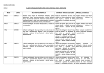 ESCUELA HELENE LANG OVALLE MESES PLANIFICACIÓN NB6 MATEMÁTICA POR EJE 2011-PROFESORA: JÉSSICA RÍOS PASTÉN UNIDAD OBJETIVOS FUNDAMENTALES- CONTENIDOS MININOS OBLIGATORIOS Emplear formas simples de modelamiento matemático, verificar proposiciones simples, para casos particulares, y aplicar habilidades básicas del proceso de resolución de problemas en contextos diversos y significativos, evaluar la validez de los resultados obtenidos y el empleo de dichos resultados para fundamentar opiniones y tomar decisiones. Establecer estrategias para calcular multiplicaciones y divisiones de números enteros. Empleo de procedimientos de cálculo para multiplicar un número natural por un número entero negativo y extensión de dichos procedimientos a la multiplicación de números enteros. Extensión de algoritmo de la división de los números naturales a la división de números enteros. Discusión y aplicación de dicho algoritmo. Utilización de estrategias de cálculo mental y escrito que implican el uso de potencias de base entera y exponente natural, determinación y aplicación de propiedades relativas a la multiplicación y división de potencias que tienen base entera y exponente natural, y extensión a potencias de base fraccionaria o decimal positiva y exponente natural. Utilización de estrategias de cálculo mental y escrito que implican el uso de potencias de base entera y exponente natural, determinación y aplicación de propiedades relativas a la multiplicación y división de potencias que tienen base entera y exponente natural, y extensión a potencias de base fraccionaria o decimal positiva y exponente natural. Utilización de estrategias de cálculo mental y escrito que implican el uso de potencias de base entera y exponente natural, determinación y aplicación de propiedades relativas a la multiplicación y división de MARZO NÚMEROS MARZO NÚMEROS ABRIL NÚMEROS Utilización estrategias de cálculo que impliquen el uso de potencias de base entera y exponente natural, determinar y aplicar sus propiedades y extenderlas a potencias de base fraccionaria o decimal positiva y exponente natural. ABRIL NÚMEROS Utilización estrategias de cálculo que impliquen el uso de potencias de base entera y exponente natural, determinar y aplicar sus propiedades y extenderlas a potencias de base fraccionaria o decimal positiva y exponente natural. ABRIL NÚMEROS Utilización estrategias de cálculo que impliquen el uso de potencias de base entera y exponente natural, determinar y aplicar sus propiedades y extenderlas a potencias de base fraccionaria o decimal positiva y exponente natural. APRENDIZAJES ESPERADOS Establecer estrategias para calcular multiplicaciones y divisiones de números enteros. Establecer estrategias para calcular multiplicaciones y divisiones de números enteros Utilizar estrategias para determinar el valor de potencias de base entera y exponente natural. Determinar propiedades de multiplicación y división de potencias de base entera y exponente natural. Verificar que propiedades de potencias de base entera y exponente natural se cumplen en potencias de base fraccionaria positiva, decimal positiva y exponente ESCUELA HELENE LANG OVALLE PLANIFICACIÓN NB6 MATEMÁTICA POR EJE 2011-PROFESORA: JÉSSICA RÍOS PASTÉN ABRIL NÚMEROS ABRIL NÚMEROS ABRIL NÚMEROS ABRIL NÚMEROS potencias que tienen base entera y exponente natural, y extensión a potencias de base fraccionaria o decimal positiva y exponente natural. Establecer estrategias para calcular multiplicaciones y divisiones de Empleo de procedimientos de cálculo para números enteros. multiplicar un número natural por un número entero negativo y extensión de dichos procedimientos a la multiplicación de números enteros. Utilización estrategias de cálculo que impliquen el uso de potencias de Extensión de algoritmo de la división de los base entera y exponente natural, determinar y aplicar sus propiedades y números naturales a la división de números extenderlas a potencias de base fraccionaria o decimal positiva y enteros. Discusión y aplicación de dicho exponente natural. algoritmo. Emplear formas simples de modelamiento matemático, verificar proposiciones simples, para casos particulares, y aplicar habilidades básicas del proceso de resolución de problemas en contextos diversos y significativos, evaluar la validez de los resultados obtenidos y el empleo de dichos resultados para fundamentar opiniones y tomar decisiones. Utilización de estrategias de cálculo mental y escrito que implican el uso de potencias de base entera y exponente natural, determinación y aplicación de propiedades relativas a la multiplicación y división de potencias que tienen base entera y exponente natural, y extensión a potencias de base fraccionaria o decimal positiva y exponente natural. Emplear formas simples de modelamiento matemático, verificar Resolución de problemas en contextos proposiciones simples, para casos particulares, y aplicar habilidades diversos y significativos que involucran las 4 básicas del proceso de resolución de problemas en contextos diversos y operaciones aritméticas con números enteros, significativos, evaluar la validez de los resultados obtenidos y el empleo de potencia de base entera, fraccionaria o dichos resultados para fundamentar opiniones y tomar decisiones. decimal positiva y exponente natural, enfatizando en el análisis crítico de los procedimientos de resolución y de los resultados obtenidos. natural. Resolver problemas que involucren las operaciones con números enteros y las potencias de base entera, fraccionaria o decimal positiva y exponente natural. Resolver problemas que involucren las operaciones con números enteros y las potencias de base entera, fraccionaria o decimal positiva y exponente natural. Resolver problemas que involucren las operaciones con números enteros y las potencias de base entera, fraccionaria o decimal positiva y exponente natural. Resolver 