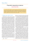 Temas Física Propulsión espacial por plasma Eduardo Ahedo Galilea Un cohete de plasma suministra en el espacio una fuerza por unidad de peso de propulsante muy superior a la de un cohete químico, gracias a la velocidad mucho mayor del plasma eyectado. Existe una amplia variedad de propulsores de plasma, dependiendo, entre otros factores, de los mecanismos de transmisión de energía interna al plasma, de su conversión en energía cinética, y de las geometrías de diseño y confinamiento. El desarrollo de modelos teóricos y códigos de simulación del plasma es esencial para mejorar el diseño y prestaciones de los cohetes de plasma. 1. Propulsión espacial: ¿química ó eléctrica? El desplazamiento de un satélite o astronave en el espacio y el control de su posición son el objeto de la propulsión espacial, la cual se lleva a cabo mediante motores cohete. Éstos se caracterizan por transportar consigo todo el propulsante (combustible) y por funcionar de acuerdo al Principio de acción y reacción, generándose una fuerza o empuje F sobre la astronave mediante la expulsión en sentido contrario de un chorro de gas de alta energía cinética. Dependiendo de la fuente principal de energía utilizada para acelerar dicho chorro, distinguiremos entre propulsión química y propulsión eléctrica o por plasma. Hay que distinguir las tecnologías de los cohetes espaciales y de los cohetes lanzadores (Ariane 5, Atlas, etcétera), responsables éstos de colocar en órbita espacial la astronave desde la superficie de la Tierra. Los cohetes lanzadores requieren una potencia enorme, capaz de generar un altísimo empuje durante varios minutos para vencer la gravedad terrestre. Estos cohetes son dominio exclusivo de la propulsión química y constituyen una tecnología independiente. La competencia entre cohetes químicos y eléctricos sólo tiene sentido en el espacio, donde los empujes son mucho menores pero operan durante un intervalo de tiempo mucho mayor. Los requerimientos propulsores en el vacío espacial se miden por DV, suma de todos los cambios de velocidad que han de realizarse en el movimiento de la astronave. Cerca de cuerpos celestes grandes, DV también incluye la compensación de la fuerza de gravedad y de la resistencia atmosférica, si la hubiera. Desde el punto de vista de la propulsión, una misión es más ambiciosa cuanto mayor sea DV. Una parte importante del coste de una misión espacial es el atribuido a su lanzamiento, el cual es proporcional al peso inicial de la astronave. Una fracción sustancial de dicho peso corresponde al combustible necesario para la propulsión de la astronave en el espacio. El aumento exponencial de la masa de propulsante Mprop con los requerimientos propulsores de la misión espacial queda reflejado en la ecuación de Tsiolkovsky M prop = exp c DV m - 1 M fin c (1) donde Mfin es la masa final de la astronave, suma de la carga útil y la masa “seca” del motor cohete (excluido el propulsante) y c es la velocidad de salida del chorro gas, parámetro conocido como impulso específico, el cual depende del tipo de cohete. En un cohete químico, el impulso específico es una característica intrínseca del propulsante, relacionada con su potencia calorífica, y existen limitaciones naturales en su valor máximo. El propulsante químico más usado en el espacio es la hidracina, por ser una combinación de sencillez (es un mono-propulsante que se calienta al descomponerse en una cama catalítica), seguridad de almacenamiento y un impulso específico mediano (en torno a 2.3 km/s). En un cohete eléctrico, c es extrínseco al propulsante y depende de la energía electromagnética transmitida al mismo. Así, los cohetes de plasma pueden proporcionar impulsos específicos altísimos: impulsos del orden de 30 km/s ya han sido demostrados en misiones espaciales. La posibilidad de reducir exponencialmente la factura asociada al transporte del propulsante o de hacer viables misiones interplanetarias hasta ahora imposibles por su gran DV hace extremadamente competitiva a la propulsión por plasma. No obstante, un cohete eléctrico es un aparato complejo con un sofisticado subsistema de control y su masa “seca” no es despreciable. Ello implica la existencia de un c óptimo según sean los parámetros de la misión propulsora. Por ejemplo, impulsos específicos de 15-20 km/s son los más adecuados para las tareas de mantenimiento orbital de satélites geostacionarios, que constituyen el mayor volumen del mercado espacial y requieren un DV en torno a 0.6 km/s en 10 años. La potencia eléctrica disponible en la astronave (proveniente de grandes paneles solares, en general) es el factor que más afecta al desarrollo, implantación y operación de los cohetes de plasma. Afortunadamente la potencia eléctrica instalada está teniendo un crecimiento espectacular, habiéndose alcanzado ya, en algún caso, los 8 kilovatios y con perspectivas de triplicarse en una década. Dado que el producto Fc, del empuje por el impulso específico, es proporcional a la potencia disponible, la operación de un cohete de plasma requiere un compromiso entre ambos factores: a mayor c, menor consumo de combustible, pero también menor F y más tiempo requerido para http://www.rsef.org REF, Vol. 25-3, Julio-Septiembre 2011 2 Temas Física realizar la tarea propulsora. Contrariamente a la creencia de los periodistas, el cohete de plasma no es un “velocista” sino un “corredor de fondo”, ideal para realizar un maratón espacial sin reavituallamiento. De hecho, la misión espacial Dawn, dotada de cohetes eléctricos, batió en junio de 2010 la marca absoluta de DV impartido por un cohete espacial. 2. Propulsión por plasma: una familia extensa y variada Propulsión electrostática a) distintos grados de desarrollo, desde motores operacionales a prototipos básicos de laboratorio; b) rangos óptimos de potencia desde el vatio al megavatio, funcionando bien en régimen estacio