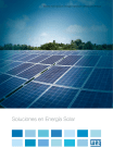 Motores | Automatización | Energía | Transmisión & Distribución | Pinturas Soluciones en Energía Solar www.weg.net Tecnología para minimizar el consumo de las industrias. Sustentabilidad para maximizar la calidad de vida de las personas. El sol es una fuente inagotable de energía, y Brasil tiene un potencial enorme para ser aprovechado. Aliada a los principios de sustentabilidad, WEG utiliza su experiencia y tecnología en la conversión de energía para ofrecer una solución completa en Energía Solar, explotando todo el potencial de las fuentes de energía renovables en la generación distribuida para los clientes. 2 Soluciones en Energía Solar www.weg.net Somos un tradicional proveedor de soluciones para sistemas eléctricos y también poseemos una solución completa para generación de energía solar, brindando a los inversores, transformadores, cubículos y/o subestaciones, además de toda la ingeniería de integración y software aplicativo. También podemos proveer componentes y accesorios conforme la necesidad de la aplicación, sea en usinas, industrias, predios comerciales, residenciales y sistemas aislados. Soluciones en Energía Solar 3 www.weg.net Convertidor Solar Central SIW700 (137 kW - 1665 kW) WEG cuenta con décadas de experiencia en el desarrollo de inversores de frecuencia industriales para diversas aplicaciones. Y para atender al mercado de usinas solares, presentamos la línea de inversores solares SIW700, que posee una extensa gama de potencias, proyectada para atender a las condiciones climáticas nacionales. Principales Características Inversor de fabricación nacional Registrado en el Finame - BNDES Asistencia técnica especializada en todo el territorio nacional Concepto modular: Mantenimiento simple y rápido Tropicalizado 10% más potencia en ambiente con temperatura de hasta 40 ºC Tensión máxima CC de hasta 1.000 V JJ JJ JJ JJ JJ JJ JJ Eficiencia Especialmente desarrollado para operar durante situaciones límite del amanecer y de la puesta de sol, proporciona excelente eficiencia desde potencias bajas hasta la potencia nominal. 100 100 Eficiência / % Eficiencia / % 9595 9090 8585 8080 PR ODUTO FINANCIADO 7575 0 0 0,1 0,1 0,2 0,2 0,3 0,3 0,4 0,5 0,6 0,4 0,5 0,6 Potência / P/Pn Potencia / P/Pn 0,7 0,7 0,8 0,8 0,9 0,9 1 1 Convertidor Solar Central SIW600 El SIW600 es un versátil convertidor para generación de energía fotovoltaica, desarrollado con la más alta tecnología para atender tanto a instalaciones comerciales, como industriales. Principales Características JJ JJ JJ JJ JJ JJ JJ JJ JJ JJ Alimentación trifásica en 380 o 440 V ca Conexión directa a la red (transformerless) Rendimiento máximo >98% Tensión de las células fotovoltaicas de hasta 1.000 V 2 MPPTs para máxima eficiencia Grado de protección IP65 para instalación externa Conexiones tipo plug-in accesibles externamente Teclas sensibles al toque y display LCD alfanumérico Interfaces de comunicación Modbus-RTU, Ethernet y USB 20 años de vida útil PR ODUTO FINANCIADO 4 Soluciones en Energía Solar www.weg.net Soluciones para Usinas Solares WEG posee la solución completa e integrada para usinas solares, combinando una amplia línea de inversores, transformadores, protecciones, monitoreo y electrocentros solares. Diagrama Unifilar Módulos solares String box WEG Máx. 1.000 V Inversor Transformador Protección Líneas de transmisión 32 String box WEG CC CA Soluciones en Energía Solar 5 www.weg.net Soluciones para Usinas Solares Electrocentro Solar Los electrocentros WEG son proyectados y fabricados a medida y poseen diseño modular, que proporciona flexibilidad para atender a usinas solares. Montados en una plataforma única, integran los sistemas eléctricos y electrónicos. Su estructura metálica elimina la necesidad de grandes construcciones en material y minimiza el tiempo de instalación. La integración y el comisionamiento de los componentes además en fábrica garantizan seguridad y confiabilidad en la instalación. 1 MW 1,3 MW 1,6 MW 2 MW 2,6 MW 3,3 MW Cubículos de Media Tensión Los cubículos WEG son montados y testados para tensiones de 2,3 kV a 36 kV de acuerdo con la norma NBR IEC 62.271-200. Por su configuración modular, asegura facilidad de montaje y mantenimiento, así como la flexibilidad de adecuarse a las diferentes características exigidas en el sector de generación solar. Poseen intertrabados entre la puerta del compartimento del disyuntor y su carrito de extracción. El disyuntor utilizado elimina mantenimiento y puede ser puesto en la posición extraído sin necesidad de abrir la puerta. Los cubículos WEG son resistentes a arcos internos y garantizan seguridad en la operación. 6 Soluciones en Energía Solar www.weg.net Transformadores en Seco y a Aceite WEG posee una línea completa de transformadores que son utilizados en usinas fotovoltaicas para elevar la tensión de generación BT de los inversores para tensiones AT que permitan que la energía fluya. Para atender a la demanda de transformadores que proporcionen más seguridad, economía de espacio y reducción de costos de instalación y mantenimiento, los transformadores aislados en resina epoxi son la mejor opción. Esta línea de productos presenta soluciones para todos los tipos de ambientes. Debido a su proceso de encapsulamiento en vacío y la calidad de la resina utilizada, evita descargas parciales y un expresivo aumento en la vida útil del transformador. Nota: están disponibles en las potencias de 112,5 a 20.000 kVA, con grados de protección hasta IP55. Subestación Subestaciones Convencionales Para subestaciones primarias ofrecemos soluciones dedicadas a la necesidad de cada cliente. Son suministros de subestaciones en régimen turn-key, habiendo entregado y energizado más de 350 subestaciones en todos los niveles de tensión hasta 550 kV. Aplica tecnología propia, contando con un equipo interno de ingeniería de aplicación y ejecuciones especializadas, que buscan cons