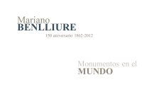 Mariano BENLLIURE 150 aniversario 1862-2012 Monumentos en el MUNDO Mariano BENLLIURE 150 aniversario 1862-2012 Monumentos en el mundo Argentina Buenos Aires Monumento a Velázquez, 1900 Bronce y mármol Museo de Calcos y Escultura Comparada “Ernesto de la Cárcova”. (Depósito del Museo de Bellas Artes), Av. de España, 1701 y Elvira Rawson de Dellepiane,.Buenos Aires En 1899 con motivo de la celebración del III centenario del nacimiento de Velázquez (Sevilla 1599 - Madrid 1660), el Círculo de Bellas Artes de Madrid convocó un concurso para erigirle un monumento frente a la fachada del Museo Nacional del Prado. Benlliure esculpió una estatua que, en lugar de presentar al concurso, envió a París a la Exposición Universal de 1900, donde se exhibió en el centro del Pabellón de España y alcanzó la Medalla de Honor, máximo galardón en escultura. Años después, tras una propuesta de adquisición por el Estado español, que no llegó a ser efectiva por un cambio de gobierno, la envió a Buenos Aires en 1910 a la Exposición Internacional del Centenario de la Independencia de Argentina y, tras obtener el Gran Premio de Escultura, fue adquirida por el gobierno de ese país. En el pedestal de mármol talló cuatro relieves alusivos a sus obras más famosas Los borrachos, Las meninas, La fragua de Vulcano y Las lanzas. Sobre él, representó al pintor como Caballero de la Orden de Santiago y aposentador real: vestido de corte, con calzón y ropilla, con una amplia capa sobre su hombro y el sombrero chambergo en la mano derecha. Mariano BENLLIURE 150 aniversario 1862-2012 Monumentos en el mundo Argentina Buenos Aires Monumento a Bernardo Irigoyen, 1911-1926 Bronce y mármol Plaza Rodríguez Peña, Recoleta, Buenos Aires En 1911, el gobierno de la República Argentina encargó al escultor un monumento dedicado al gran estadista (Buenos Aires, 1822 - 1906). Benlliure lo concibió como una gran escenografía en altorrelieve, con dos figuras monumentales, símbolos de la Patria y el Trabajo, y dos grupos colocados simétricamente, en los que un gaucho conduce ganado bovino en uno y potros en el otro. La estatua de Irigoyen en bronce, fundida en 1916, destaca en una escalinata central sobre el fondo de mármol. El conjunto se terminó en 1926, pero por incidencias políticas no se inauguraría hasta 1933. Mariano BENLLIURE 150 aniversario 1862-2012 Monumentos en el mundo Argentina Paraná Monumento al general Urquiza, 1910-1913 Bronce y mármol Avenida Rivadavia, Paraná El monumento fue un encargo a Agustín Querol, que falleció cuando había realizado únicamente el pedestal, motivo por el que se solicitó a Benlliure la realización de la estatua ecuestre del general (Provincia de Entre Ríos, Argentina, 1801 - 1879). Fundida en 1913 e inaugurada en 1920, reproduce el instante en que la arrogante figura del jinete tensa las riendas para frenar a su montura. Mariano BENLLIURE 150 aniversario 1862-2012 Monumentos en el mundo Colombia Bogotá Mausoleo a Rafael Uribe, 1916 Bronce y mármol Cementerio General, Bogotá Benlliure modeló y fundió en bronce en 1916 el busto del abogado, periodista, diplomático y general colombiano Rafael Uribe (Valparaiso, Antioquia, 1859 - Bogotá, 1914), para el monumental mausoleo proyectado por el arquitecto francés Gastón Lelarge. Mariano BENLLIURE 150 aniversario 1862-2012 Monumentos en el mundo Cuba La Habana Panteón de la familia Falla y Bonet, 1933-1939 Bronce, mármol y granito Cementerio Colón, La Habana Fue un encargo de la familia en 1933. Benlliure presentó parte del conjunto ya terminado en su estudio en 1935 pero, tras estallar la Guerra Civil en 1936, perdió el contacto con Cuba y el envió de la obra no pudo realizarse hasta 1939. Concebido en forma de media pirámide de granito, con una puerta en relieve en el frente que, fundida en bronce, representa una escalera en perspectiva por la que ascienden cuatro hombres que portan el féretro. A los lados de la puerta, sobre unos peldaños, se alzan las estatuas de la Piedad y el Dolor en mármol, a tamaño natural, mientras sobre el vértice de la pirámide levita la figura en bronce del Sagrado Corazón. Mariano BENLLIURE 150 aniversario 1862-2012 Cuba Monumentos en el mundo Güines El coleo, 1911 Bronce Granja Amistad con los pueblos, Güines Benlliure concibió un grupo monumental de tema taurino, El coleo, por decisión propia, sin responder a ningún tipo de encargo. En él, un gran toro, casi de tamaño natural, se revuelve llevando en su costado una vara quebrada, pisotea a un varilarguero de bruces y a su montura, al tiempo que un joven torero, de rasgos desencajados por el esfuerzo, le agarra frenéticamente por el rabo. Fundido en bronce lo presentó en la Exposición Internacional de Arte que tuvo lugar en Roma en 1911. Finalizada la exposición volvió a España, para ocupar un importante lugar en el jardín de la casa-estudio de Benlliure en Madrid. En 1936 fue adquirido por Gómez Mena, rico terrateniente cubano, que exhibió la escultura en su jardín de El Vedado en La Habana, para después trasladarla al central azucarero familiar, Amistad, en Güines. Tras la Revolución castrista en 1960, el ingenio y la escultura pasaron a ser propiedad del estado cubano. Mariano BENLLIURE 150 aniversario 1862-2012 Monumentos en el mundo Chile Santiago de Chile Monumento al general Bulnes, 1909-1938 Bronce y piedra Alameda de Santiago, Santiago de Chile En vísperas de los festejos del Primer Centenario de la Independencia se acordó erigir un monumento al general y presidente de la República entre 1841 y 1951, Manuel Bulnes Prieto (Concepción, 1799 - Santiago, 1866). En 1909 el nieto de Bulnes, enviado a España como representante diplomático de Chile, visitó a Benlliure por indicación de Vicente Blasco Ibáñez, amigo común, para encargarle un boceto del monumento que se quería erigir. El proyecto se paralizó y se puso en marcha en distintas ocasiones, como prueban los do