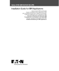 Eaton 9130 (9910-E15/E16) UPS Installation Guide for IBM Applications Asennusopas IBM-sovelluksille Guide d'Installation pour Applications IBM USV Installationsanleitung für IBM-Anwendungen Guida all'Installazione per le Applicazioni IBM Instrukcja instalowania dla zastosowań IBM Руководство по установке в системах IBM Guía de instalación para aplicaciones IBM Installationshandledning för IBM-applikationer This page intentionally left blank. Eaton 9130 (9910-E15/E16) UPS Installation Guide for IBM Applications Special Symbols The following are examples of symbols used on the UPS or accessories to alert you to important information: RISK OF ELECTRIC SHOCK - Indicates that a risk of electric shock is present and the associated warning should be observed. CAUTION: REFER TO OPERATOR'S MANUAL - Refer to your operator's manual for additional information, such as important operating and maintenance instructions. This symbol indicates that you should not discard the UPS or the UPS batteries in the trash. This product contains sealed, lead‐acid batteries and must be disposed of properly. For more information, contact your local recycling/reuse or hazardous waste center. This symbol indicates that you should not discard waste electrical or electronic equipment (WEEE) in the trash. For proper disposal, contact your local recycling/reuse or hazardous waste center. IBM, AIX, xSeries, AS/400, OS/400, and RS/6000 are registered trademarks and System i, System p, OpenPower, and i5/OS are trademarks of International Business Machines Corp. Eaton and LanSafe are registered trademarks and ConnectUPS is a trademark of Eaton Corporation or its subsidiaries and affiliates. Burndy is a registered trademark of Framatone Connectors International. ECopyright 2009 Eaton Corporation, Raleigh, NC, USA. All rights reserved. 164201783 2 No part of this document may be reproduced in any way without the express written approval of Eaton Corporation. Table of Contents 1 2 3 4 Installation . . . . . . . . . . . . . . . . . . . . . . . . . . . . . . . . . . . . . . . . . . . . . . . . . . . . . . . . 6 Parts List . . . . . . . . . . . . . . . . . . . . . . . . . . . . . . . . . . . . . . . . . . . . . . . . . . . . . . . . . . . . . . . . . . . . . . . . . . Unpacking the Cabinet . . . . . . . . . . . . . . . . . . . . . . . . . . . . . . . . . . . . . . . . . . . . . . . . . . . . . . . . . . . . . . . . . Installation . . . . . . . . . . . . . . . . . . . . . . . . . . . . . . . . . . . . . . . . . . . . . . . . . . . . . . . . . . . . . . . . . . . . . . . . Wiring Installation . . . . . . . . . . . . . . . . . . . . . . . . . . . . . . . . . . . . . . . . . . . . . . . . . . . . . . . . . . . . . . . . . . . Installing the UPS . . . . . . . . . . . . . . . . . . . . . . . . . . . . . . . . . . . . . . . . . . . . . . . . . . . . . . . . . . . . . . . . . Connecting the EBM(s) . . . . . . . . . . . . . . . . . . . . . . . . . . . . . . . . . . . . . . . . . . . . . . . . . . . . . . . . . . . . . . Remote Emergency Power-off . . . . . . . . . . . . . . . . . . . . . . . . . . . . . . . . . . . . . . . . . . . . . . . . . . . . . . . . . Power Connections and Startup . . . . . . . . . . . . . . . . . . . . . . . . . . . . . . . . . . . . . . . . . . . . . . . . . . . . . . . . . . UPS Monitoring on the System i and AS/400 . . . . . . . . . . . . . . . . . . . . . . . . . . . . . . . . . . . . . . . . . . . . . . . . . UPS Rear Panels . . . . . . . . . . . . . . . . . . . . . . . . . . . . . . . . . . . . . . . . . . . . . . . . . . . . . . . . . . . . . . . . . . . . . 6 8 8 9 9 11 13 14 16 17 Operation . . . . . . . . . . . . . . . . . . . . . . . . . . . . . . . . . . . . . . . . . . . . . . . . . . . . . . . . . . 18 Control Panel Functions . . . . . . . . . . . . . . . . . . . . . . . . . . . . . . . . . . . . . . . . . . . . . . . . . . . . . . . . . . . . . . . . Changing the Language . . . . . . . . . . . . . . . . . . . . . . . . . . . . . . . . . . . . . . . . . . . . . . . . . . . . . . . . . . . . . Display Functions . . . . . . . . . . . . . . . . . . . . . . . . . . . . . . . . . . . . . . . . . . . . . . . . . . . . . . . . . . . . . . . . . Operating Modes . . . . . . . . . . . . . . . . . . . . . . . . . . . . . . . . . . . . . . . . . . . . . . . . . . . . . . . . . . . . . . . . . . . . Normal Mode . . . . . . . . . . . . . . . . . . . . . . . . . . . . . . . . . . . . . . . . . . . . . . . . . . . . . . . . . . . . . . . . . . . . Battery Mode . . . . . . . . . . . . . . . . . . . . . . . . . . . . . . . . . . . . . . . . . . . . . . . . . . . . . . . . . . . . . . . . . . . . Bypass Mode . . . . . . . . . . . . . . . . . . . . . . . . . . . . . . . . . . . . . . . . . . . . . . . . . . . . . . . . . . . . . . . . . . . . Standby Mode . . . . . . . . . . . . . . . . . . . . . . . . . . . . . . . . . . . . . . . . . . . . . . . . . . . . . . . . . . . . . . . . . . . UPS Startup and Shutdown . . . . . . . . . . . . . . . . . . . . . . . . . . . . . . . . . . . . . . . . . . . . . . . . . . . . . . . . . . . . . Starting the UPS . . . . . . . . . . . . . . . . . . . . . . . . . . . . . . . . . . . . . . . . . . . . . . . . . . . . . . . . . . . . . . . . . . Starting the UPS on Battery . . . . . . . . . . . . . . . . . . . . . . . . . . . . . . . . . . . . . . . . . . . . . . . . . . . . . . . . . . UPS Shutdown . . . . . . . . . . . . . . . . . . . . . . . . . . . . . . . . . . . . . . . . . . . . . . . . . . . . . . . . . . . . . . . . . . . Configuring the UPS for EBMs . . . . . . . . . . . . . . . . . . . . . . . . . . . . . . . . . . . . . . . . . . . . . . . . . . . . . . . . . . . 18 19 19 20 20 20 21 21 22 22 23 23 24 Communication Options . . . . . . . . . . . . . . . . . . . . . . . . . . . . . . . . . . . . . . . . . . . . . . 25 System i Interface Overview . . . . . . . . . . . . . . . . . . . . . . . . . . . . . . . . . . . . . . . . . . . . . . . . . . 