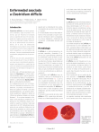 Enfermedad asociada a Clostridium difficile en la placa crecen tanto las cepas toxigénicas como las no toxigénicas, teniendo las mismas características morfológicas. E. Bouza Santiago, T. Peláez García y P. Catalán Alonso Servicio de Microbiología Clínica y Enfermedades Infecciosas-VIH. Hospital General Universitario Gregorio Marañón. Madrid. Introducción Clostridium difficile es un bacilo grampositivo anaerobio, capaz de producir exotoxinas, que con frecuencia se comporta como un saprofito del colon. Por otro lado, puede ser el agente causal de cuadros diarreicos, de intensidad variable, relacionados con la administración de antimicrobianos. En el colon, las alteraciones morfológicas que produce varían desde una apariencia normal hasta imágenes de colitis inespecífica o, en sus formas más extremas, lesiones pseudomembranosas consideradas patognomónicas de esta entidad. El primer caso de colitis pseudomembranosa fue descrito por Finney en 1893 en una mujer joven recientemente gastrectomizada, que desarrolló un cuadro fatal de colitis con presencia de pseudomembranas parecidas a las formadas en faringe en casos de difteria1. En 1935, Hall y O’Toole describieron una especie de Clostridium en la flora intestinal de neonatos sanos, que era productora de exotoxinas letales al inyectarlas en ratones. La denominaron Bacillus difficile por su dificultad de crecimiento 2. En la década de los 60, con la introducción en el mercado de lincomicina y clindamicina, se produjo una elevada incidencia de cuadros de diarrea y de colitis pseudomembranosa, que alcanzó dimensiones epidémicas, llegando a afectar al 10% de los enfermos tratados con dichos fármacos3,4. En un primer momento, la llamada “colitis asociada a clindamicina” se atribuyó a muy diferentes causas incluyendo la isquemia intestinal, hasta que Larson et al5 en 1977 demostraron la presencia de una sustancia citotóxica en las heces de los pacientes con colitis asociada a antibióticos. Sólo un año después, en 1978, Barlett y su grupo 6, demostraron el papel etiológico de Clostridium difficile en la colitis pseudomembranosa lo que fue seguido por la comprobación de la eficacia terapéutica de vancomicina por Tedesco y su grupo7. En las dos décadas transcurridas desde entonces se ha acumulado una gran cantidad de información sobre la etiopatogenia, clínica, diagnóstico y tratamiento de la infección y enfermedad asociada a C. difficile. Microbiología C. difficile es un bacilo grampositivo, esporulado, capsulado y anaerobio. El esporo es oval y generalmente subterminal. Su aislamiento a partir de heces, se realiza en un medio selectivo de cicloserina-cefoxitina-fructosa, desarrollado por George et al (CCFA). El medio es inoculado con la muestra fecal y se incuba a 37°C durante dos a tres días en atmósfera anaerobia, ya que un período de incubación de un día no es suficiente para su óptima recuperación. El crecimiento de C. difficile es muy característico, tanto por la morfología de la colonia (verde estrellada) (fig. 1), por su olor a cuadra de caballos, así como por sus propiedades fluorescentes (las colonias presentan a la luz ultravioleta una fluorescencia verde pálida). C. difficile produce p-cresol y ácido isocaproico como metabolitos, que dan pruebas enzimáticas específicas. El principal inconveniente del cultivo de C. difficile en CCFA, a pesar de su alta sensibilidad, es su falta de especificidad, ya que Patogenia C. difficile desarrolla enfermedad debido a la producción de dos grandes toxinas proteicas, denominadas A y B. En la tabla 1, ofrecemos algunas características comparativas de ambas toxinas. Son las toxinas bacterianas conocidas de mayor peso molecular, y mientras la toxina A causa preferentemente el daño intestinal (enterotoxina), la toxina B es tóxica para líneas celulares mantenidas en cultivo (base de la prueba de laboratorio) 8. Los aislados toxigénicos de C. difficile producen toxinas A y B en cantidades similares, oscilando desde niveles bajos (cepas débilmente toxigénicas) hasta niveles muy altos (cepas altamente toxigénicas), existiendo también cepas no toxigénicas. Son extraordinariamente infrecuentes las cepas de C. difficile productoras de una sola de las toxinas. C. difficile vive con frecuencia en la superficie de objetos hospitalarios y en el colon de neonatos y de algunos adultos. Su presencia es tanto mayor cuanto mayor ha sido el tiempo de hospitalización y cuanto más frecuente ha sido el uso de antimicrobianos. Para la producción de un cuadro de diarrea asociada a Clostridium difficile (DACD), se requieren varios pasos. Por un lado, la alteración de la flora normal en presencia de los antimicrobianos, lo que permite el sobrecrecimiento de C. difficile y la producción de toxinas, y por otro, la presencia de un huésped susceptible donde deben coexistir la presencia de receptores en colon para dicha toxina y factores de debilidad asociados al mismo. Los agentes inductores más importantes de los cambios de la flora, aunque no los Fig 1. Aspecto de las colonias de C. difficile sobre placas de cicloserina-cefoxitinafructosa (CCFA). Medicine 1998; 7(74): 3422-3426 3422 © Idepsa 98 © ENFERMEDAD ASOCIADA A CLOSTRIDIUM DIFFICILE TABLA 1 Algunas características diferenciales de las toxinas de C. difficile Tamaño Diana Colon humano Liberación de citoquinas Receptores celulares Citotoxicidad Toxina A Toxina B 308 kd Enterotoxina Susceptible Sí Sí Sí 250 kd Citotoxina Susceptible Sí ? Sí TABLA 2 Clasificación de algunos antimicrobianos por su riesgo de causar diarrea asociada a C. difficile Frecuente Cefalosporinas Amox-clavulánico Clindamicina Ocasional Penicilinas Eritromicina únicos, son los antimicrobianos que se eliminan por vía fecal y que no se absorben totalmente. En la tabla 2, ofrecemos una clasificación de antimicrobianos de acuerdo a su probabilidad de seleccionar C. difficile. Los más frecuentemente asociados son cefalos
