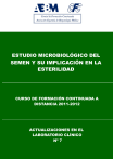 ESTUDIO MICROBIOLÓGICO DEL SEMEN Y SU IMPLICACIÓN EN LA ESTERILIDAD CURSO DE FORMACIÓN CONTINUADA A DISTANCIA 2011-2012 ACTUALIZACIONES EN EL LABORATORIO CLÍNICO Nº 7 I.S.S.N.- 1988-7477 Título: Actualizaciones en el Laboratorio Clínico Editor: Asociación Española de Biopatología Médica Maquetación: AEBM Fecha de Distribución: mayo de 2012 Estudio microbiológico del semen y su implicación en la esterilidad. Mª Teresa Gil Ruiz (1), Mª Sagrario Díaz Merino (2), Alicia Beteta López (1), Lorena Vega Prado (1), J. Ismael Linde Rubí (1).- (1) Facultativos Especialistas de Área. Servicio de Análisis Clínicos. Hospital General Ntra. Sra. del Prado de Talavera de la Reina. Toledo.(2) Facultativo Especialista de Área. Servicio de Análisis Clínicos. Hospital Nacional de Parapléjicos. Toledo. 1.- INTRODUCCIÓN. Las glándulas anexas del aparato genital masculino engloban un grupo de estructuras con función exocrina y capacidad reservoria, que están unidas al aparato urinario por vías comunes que desembocan en la uretra. En ellas se producen y secretan, entre otras, sustancias de gran valor energético, lo que explica la apetencia de los microorganismos por dichas estructuras. Por tanto, las glándulas anexas masculinas son estructuras favorables para la colonización y asentamiento bacterianos. Por ello, disponen de mecanismos de defensa generales (macrófagos, anticuerpos) y específicos (fosfato de espermina, iones, zinc) que tratan de impedir la invasión. Por otra parte, las células prostáticas poseen receptores reconocidos por las adhesinas específicas de ciertas bacterias. Estas adhesinas tienen la capacidad de unirse al epitelio del huésped, constituyendo el primer paso de la colonización. Posteriormente se produce el fenómeno citotóxico, que explica su acción inflamatoria. 772 De este modo, la infección se inicia en un punto concreto, para extenderse posteriormente. Dependiendo de la virulencia del agente invasor y del tiempo transcurrido desde el inicio de su acción, se encontrarán signos y síntomas clínicos más o menos concretos. El diagnóstico microbiológico de la patología infecciosa de la vía seminal es complejo y su influencia sobre la esterilidad es todavía hoy motivo de debate. La exacta relación que existe entre infección de la vía seminal y la esterilidad no está del todo clara, pero se ha llegado a estimar por diversos autores que entre el 15 y el 30% de las parejas estériles pueden tener esta etiología (1). La presencia de gérmenes en la próstata, vesículas seminales, conductos deferentes, epidídimo y testículo, puede originar procesos inflamatorios de tipo obstructivo, disfunciones secretoras glandulares y alteraciones de la funcionalidad espermática por adherencia de los microorganismos al espermatozoide o por el desarrollo de anticuerpos antiespermatozoide (2). No obstante, esto no sucede siempre, pues se ha demostrado la normalidad de los parámetros seminales de individuos afectos de infecciones del aparato genital. No obstante, algunos autores han sugerido que el hecho de no encontrar alteración de éstos, no indica que la capacidad funcional de los espermatozoides no se encuentre comprometida, ya que tanto las bacterias como sus productos y el incremento de la peroxidación durante la infección, podrían ocasionar cambios bioquímicos y moleculares en la membrana espermática, que afectan la reacción acrosómica y su capacidad de fusión con el ovocito, así como daños en el ADN espermático (3) (4). 773 La infección de la vía seminal puede afectar: La propia vía seminal El espermatozoide El plasma seminal El aparato genital femenino pudiendo producir alteraciones en la concentración espermática (azoospermia, oligozoospermia), en la calidad espermática (astenozoospermia, teratozoospermia, alteraciones en la licuefacción del semen, disminución de los parámetros bioquímicos del eyaculado, alteraciones del pH y presencia de anticuerpos antiespermatozoide (AAE))y en el volumen del eyaculado (hipospermia), así como la detección de sémenes leucocitospérmicos (5) o con hematíes (hemospermia). La complejidad diagnóstica de las infecciones de la vía seminal se debe a la propia estructura anatómica, que dificulta el acceso directo a los órganos y por tanto a la extracción de una muestra para analizar. El cultivo de semen es el punto de partida para iniciar estudios microbiológicos complementarios y poder localizar el órgano afectado. En muchas ocasiones el diagnóstico microbiológico precisa de la comparación de los hallazgos en orina, semen, secreción prostática y frotis uretral, como más adelante veremos. 2.- INDICACIONES PARA LA REALIZACIÓN DE UN SEMINOCULTIVO Al ser una prueba opcional, según OMS (1999) (6), se indicará el cultivo del semen en las siguientes situaciones: 774 1) Hipospermia y/o pH < 7.0 2) Hemospermia 3) Alteraciones en la licuefacción 4) Presencia de leucocitospermia (> 106 leucocitos/mL) o aumento de elastasa granulocitaria en líquido seminal 5) Presencia de aglutinaciones espontáneas de los espermatozoides en el eyaculado, que pueden estar en relación con la existencia de AAE en el semen 6) Marcada astenozoospermia 7) Marcada oligozoospermia 8) Teratozoospermia 9) Descenso de los marcadores prostáticos (fosfatasa ácida, ácido cítrico), de vesículas seminales (fructosa) o epididimarios (carnitina). En ocasiones una infección puede causar una disminución considerable de la función secretora, pero a pesar de esto la cantidad total del marcador o los marcadores presentes todavía pueden estar dentro del amplio rango de normalidad. La infección también puede producir un daño irreversible del epitelio secretor, de modo que incluso después del tratamiento, la capacidad secretora aún será baja. 10) Antecedente de infecciones urogenitales o de las glándulas accesorias con datos actuales de posible infección de la vía seminal 11) Inclusión en programas de