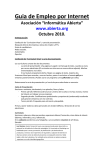 Guia de Empleo por Internet Asociación “Informática Abierta” www.abierta.org Octubre 2010. INTRODUCCIÓN Confección de “Currículum Vitae” y carta de presentación. Búsqueda directa de empresas, bolsas de empleo y ETTs. Envío de candidatura. Redes sociales. Autoempleo. Opositar. Confección de “Currículum Vitae” y carta de presentación. Los currículums constan de dos documentos: - La carta de presentación: Una página en papel ó el mensaje de texto, cuando se envía por correo electrónico (El curriculum en éste caso va como archivo adjunto). Muchos entrevistadores no la leen. - El currículum propiamente dicho. Mejor una página de texto, máximo dos. Usaremos Word para crearlos y una vez hechos, pasar el currículum a formato pdf para enviarlos posteriormente. (Puede usarse un programa como pdfcreator para ello). Retocaremos la carta de presentación y el currículo para cada oferta en concreto. Carta de Presentación Secciones: remitente, destinatario, tres párrafos, firma y fecha. - Primer párrafo: Referencia del anuncio y motivo de la carta (si no hay anuncio, motivo del interés en trabajar en esa empresa). - Segundo párrafo: Cualificaciones profesionales y experiencia (condensada) resaltando qué ganará la empresa con ese contrato. - Tercer párrafo: Propuesta para entrevista y despedida. Firmar y poner todos los datos personales sin olvidar teléfono y dirección de correo electrónico. Currículum. Secciones: cabecera, datos personales, experiencia laboral, formación, otros datos de interés (idiomas, informática, etc), referencias. En la cabecera pondremos una fotografía y un escuetísimo resumen de 2/3 líneas. Ejemplo: José Sánchez: Gestor Comercial, busca una empresa donde poder desarrollar su potencial en el ámbito de la dirección estratégica. Es Licenciado en Marketing con habilidades para la venta, promoción, la planificación y la distribución de productos y servicios. Gran experiencia en la gestión y captación de clientes en diversos sectores como las telecomunicaciones o el pequeño comercio. Habla inglés a alto nivel y alemán, y ha realizado varias estancias en países europeos .superiores a un año. Movilidad geográfica. En datos personales: Nombre completo, DNI, dirección, estado civil –omitirlo si separado/divorciado- correo electrónico, y dos teléfonos de contacto. En experiencia laboral hay que enumerar cronológicamente desde la experiencia más reciente hasta la más antigua: empresa, puesto, funciones –destacando logros conseguidos- y periodo. Intentar usar las mismas palabras que el anuncio de empleo. Si no hay experiencia, indicar el potencial en varias ramas relacionadas con el puesto. En formación indicar los estudios y/o títulos conseguidos, centro de estudios, y periodo, empezando por el más reciente. Si no se ha acabado una carrera, poner “cursados X años de licenciatura en …”. Incluir acreditaciones en cursos no reglados (idiomas, informática). En otros datos de interés incluir los conocimientos sobre idiomas, informática, carnet de conducir/vehículo propio. En referencias incluir nombres, cargos, empresas y teléfonos de antiguos jefes y responsables de trabajo. Hay que repasar varias veces el currículum, intentando eliminar cualquier elemento superfluo para dejarlo lo más resumido posible. Promoción del currículum. • • • • Además de mandar el currículum, podemos ponerlo en una web, bien en formato texto, ó en vídeo (videocurrículum). Para colgarlo de una web, podemos usar gratuitamente servicios específicos, como http://easy-cv.com ó bien usar cualquier web de hosting gratuito y subir allí nuestro currículum. El videocurrículum lo podemos subir a los videos de youtube http://www.youtube.com ó en cualquiera de las páginas web que existen al efecto, como http://www.tumeves.com. Una vez que disponemos de los enlaces, bien sean de currículum modo texto, videocurrículum, ó ambos, podemos insertarlos en nuestra firma de correo electrónico, de forma que aparezcan en todos los correos que enviemos. Búsqueda directa de empresas, bolsas de empleo y ETTs y envío de candidatura. • • • • Usaremos buscadores como www.google.com para localizar empresas, bolsas de empleo y empresas de trabajo temporal. Para buscar empresas donde lanzar una candidatura espontánea, buscaremos los términos relacionados con nuestra experiencia y conocimientos. Es recomendable acotar las búsquedas por tiempo y/o zona geográfica; la mayoría de los buscadores lo tiene. Una vez tenemos una lista de empresas, buscaremos direcciones de correo dentro de las mismas, idealmente que estén relacionadas con el área de recursos humanos. Allí mandaremos el currículum vía correo electrónico y/o postal. Además, visitaremos las páginas web que figuran en éste documento, y enviaremos el currículum ó lo rellenaremos (algunas obligan a teclear el currículum en formularios). Redes Sociales. • • Usando redes sociales convencionales (facebook, twitter, tuenti) es posible formar una red de conocidos y, a través de ellos, conseguir contactos para trabajar. Es preferible usar redes sociales especializadas en el empleo, como Xing, Viadeo ó Linkedin. Linkedin. Contactaremos fundamentalmente con colegas de profesión, antiguos compañeros de estudios, empleados de empresas y reclutadores de personal. Linkedin no es como facebook o tuenti, aquí los contactos son 100% profesionales-empresarios, emprendedores, desempleados, ejecutivos, estudiantes, etc. (65 millones en todo el mundo). Hay cuentas gratuitas y cuentas de pago. Por ahora usaremos las primeras. Conectaremos con www.linkedin.es, en el apartado Únete a LinkedIn hoy mismo rellenamos Nombre, Apellidos, Correo Electronico y Contraseña. Completar las pantallas siguientes. Al final, debemos confirmar nuestro correo electrónico (Entrar a nuestro correo particular y confirmar la solicitud). Iremos a Perfil, subiremos una fotografía e ire