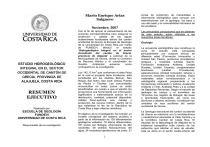 Mario Enrique Arias Salguero Noviembre, 2007 ESTUDIO HIDROGEOLÓGICO INTEGRAL EN EL SECTOR OCCIDENTAL DE CANTÓN DE GRECIA, PROVINCIA DE ALAJUELA, COSTA RICA RESUMEN EJECUTIVO Realizado por ESCUELA DE GEOLOGÍA FUNDEVI UNIVERSIDAD DE COSTA RICA Responsable de la investigación Con el fin de apoyar el planeamiento de las acciones correspondientes para asegurar la protección y calidad de las aguas subterráneas localizadas dentro del cantón occidental de Grecia, la Escuela de Geología de la Universidad de Costa Rica por medio de FUNDEVI, efectuó el estudio “Hidrogeológico Integral en el sector Occidental del cantón de Grecia, provincia de Alajuela” a solicitud de la Municipalidad de Grecia, donde la Comisión de Recurso Hídrico y el coordinador de Gestión Ambiental actuaron como contraparte en la investigación. 2 Los 142,13 km que conforman el área física en la cual el proyecto tiene incidencia, está constituida por los distritos Bolívar, San Roque, San Isidro, San José, Grecia, Puente de Piedra y Tacares. Las comunidades circunscritas en estas zonas se verán beneficiadas, en cuanto a que el estudio les proporciona una herramienta con información significativa y sistematizada acerca de la distribución, cantidad, potencial disponible, calidad físico-química, uso, manejo y protección del recurso hídrico, dentro de lo que establece la ley de la República de Costa Rica y bajo criterios científicos. El objetivo de la investigación fue brindar un modelo conceptual del sistema acuífero a partir de la información de 135 afloramientos geológicos visitados, 78 aforos diferenciales, 101 pozos con litología, información de 402 nacientes, 28 análisis fisicoquímicos del agua, 24 muestreos geotécnicos de suelo, 21 1 zonas de protección de manantiales e información bibliográfica para conocer sus interrelaciones con la geología, los tipos y uso del suelo y la vulnerabilidad intrínseca de los acuíferos. Las principales conclusiones que se obtienen de este estudio, están referidas a las siguientes áreas temáticas: Geología La secuencia estratigráfica que constituye la zona de estudio está compuesta principalmente por cuerpos lávicos de diferente edad (Formación Intracañón y Unidad San Pedro), productos piroclásticos antiguos y recientes (Unidad Sarchí, Formación Avalancha Ardiente, Unidad Rosales, Unidad Tacares), conglomerados brechosos (Unidad Providencia), paleoaluviones (Unidad Colorado), lahares y aluviones recientes (Unidad Achiote). Estos materiales están correlacionados a la estratigrafía regional, propiamente a las formaciones: Intracañón o Colima, Avalancha Ardiente o Tiribí, Andesita Poás y a la unidad de Depósitos Recientes. Según el estudio de geología de campo y el inventario de 101pozos con registro de litología; las lavas e ignimbritas fracturadas, así como los aluviones y lahares recientes, constituyen las unidades de roca acuíferas del cantón occidental de Grecia. La Geología estructural del cantón occidental de Grecia se relaciona con la morfotectónica y neotectónica asociadas al Valle Central y a la Cordillera Central de Costa Rica. El escarpe de la falla-pliegue de Alajuela es la evidencia topográfica más notoria de los esfuerzos que afectan el área de estudio, éste se ubica en el sector medio-inferior del cantón occidental de Grecia y su disposición geométrica podría estar asociada al sistema de fallas transcurrentes de la falla Tacares. Existe una relación directa entre las fracturas o el diaclasamiento de las unidades geológicas aflorantes, con la infiltración hacia las tablas de agua subterráneas, la cual aparentemente depende del rumbo y la dirección de inclinación de las fracturas o diaclasas con respecto a la dirección preferencial de flujo de los ríos (NE-SW). El patrón de drenaje presenta un marcado control estructural, además existen rasgos de origen fluvial u otros relativos al trayecto seguido por materiales lávicos (frentes de colada) o a la presencia de capas muy consolidadas de material tobáceo en los cauces. La dirección predominante de los cauces principales de los ríos coincide con las fracturas tensionales de rumbo NE-SW. Se pueden asociar los datos de rumbo de las fracturas NW-SE con la falla-pliegue de Alajuela. La dirección preferencial de las fracturas abiertas (tensionales) y sin relleno (rumbo NE-SW) puede favorecer la permeabilidad de los materiales de suelo o roca (conductividad hidráulica vertical), de esta forma se potencia su capacidad de infiltración. Esto justifica en parte la gran mayoría de tramos influentes en los ríos y el porqué en los balances hídricos de suelos la recarga potencial de los acuíferos se ve favorecida sobre la escorrentía. Caracterización Geotécnica de suelos La caracterización geotécnica de los suelos del cantón de Grecia se realizó principalmente en los suelos producto de la alteración de materiales volcánicos de la Unidad Tacares, ya que es la unidad que presenta la mayor cobertura de suelos en el área. Las diferentes propiedades físicas determinadas presentan una variación muy amplia de valores, lo que se debe a los diferentes estados de meteorización y variada granulometría de los suelos de la zona. Los valores altos de porosidad en los suelos se relacionan con la presencia en la mayoría de las muestras, de granulometrías gruesas como las arenas y gravas o también, producto de la formación de vacíos debido a la meteorización. Igualmente, los altos valores en el grado de saturación indican que a pesar de ser materiales muy porosos son poco permeables, es decir; los materiales fácilmente acumulan agua, pero drenan muy lentamente por lo que el agua esta siendo retenida, esto debido a la presencia de materiales finos como los limos y arcillas, en ellos. En el ensayo de corte directo (CD), las muestras MTN-04, MTN-06 y MTN-09, con más de 15% de arenas, presentan un comportamiento friccionante, es decir; que la re