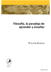 Filosofía, la paradoja de aprender y enseñar WALTER KOHAN Zorzal Copyrighted material WALTER KOHAN Filosofía, la paradoja de aprender y enseñar libros del Zorzal Copyrighted material Walter Kohan Filosofía, la paradoja de aprender y enseñar -1 a ed. Buenos Aires: Libros del Zorzal, 2008. 96 pp.; 20x13 cms (Formación docente. Filosofía; 3) ISBN 978-987-599-103-3 1. Formación docente 2. Filosofía I. Título CDD 107 O Libros del Zorzal, 2008 Buenos Aires, Argentina Printed in Argentino Hecho el depósito que previene la ley 11.723 Para sugerencias o comentarios acerca del contenido de esta obra, escríbanos a: <[email protected]> Asimismo, puede consultar nuestra página web: <www.delzorzal.com.ar> Copyrighted material INDICE Presentación de una ¡dea ..................................................................... 11 Introducción Enseñar filosofía: necesidad imposible ............................................. 15 Capítulo 1 El enigma-paradoja del profesor (Sócrates y Foucault) .................. 21 Lectura ..................................................................................................... 45 Capítulo II Políticas de un enigma (Sócrates y Jacotot-Ranciére) ..................... 49 Lectura ..................................................................................................... 66 Capítulo III __________________________________________ El enigma-paradoja de aprender (Sócrates y Dcrrida) .................... 69 Lee jura .................................................................................................... 87 Referencias bibliográficas .................................................................... 92 Copyrighted material Copyrighted material Hablando en general, los libros de filosofía comienzan todos el mismo día: al día siguiente de la muerte de Sócrates. Es difícil calcular el tiempo transcurrido entre la muerte de Sócrates y la redacción del primer diálogo de Platón, lugar de nacimiento de la filosofía, pero cuando Platón convierte a Sócrates en protagonista de ese primer diálogo escrito señala que aquel libro. lugar de nacimiento de la filosofía, ya había comenzado antes de que empezase a ser escrito, cuando Sócrates aún estaba vivo o acababa de morir J. L Pardo, La regla de juego. Sobre la dificultad de aprender filosofía. Barcelona: Galxia Guccnbcrg/ Círculo de Lectores, 2004, p. 13. Copyrighted material Copyrighted material PRESENTACIÓN DE UNA IDEA Este libro se propone presentar una idea. Tal vez suene demasiado ambicioso, pero piense el lector que se trata sólo de una idea. Ya que es lo que importa, vamos directamente a ella. La idea tiene dos partes o dimensiones. La primera dice que la puesta en práctica de la filosofía con pretensiones educativas, esto es, el encuentro bajo el nombre de filosofía entre dos pensamientos —uno de quien ocupa la posición de enseñante y otro del que habita el espacio de aprendiz—, es un encuentro necesariamente paradójico, imposible, cuando merece ese nombre “filosofía”. La segunda sostiene que esa condición, lejos de ser un impedimento o un desestímulo para su práctica, es su potencia y una fuente de inspiración permanente para pensar el sentido de la filosofía en la educación. Cuando no percibimos esa dimensión paradójica o imposible de la filosofía, cuando damos por hecho que ella debe y puede ser enseñada, estamos dejando algo muy propio de su condición y, con ello, una fuerza para su enseñanza. O corremos, entonces, el riesgo de abandonar, sin pensar, la filosofía. Uno de los propósitos principales de esta escritura es dejar pensando al lector —presumiblemente profesor o alumno de filosofía, o más ampliamente, profesor o alumno interesado en la dimensión filosófica de esa condición— en esa necesidad imposible y lo que puede abrirse a partir de ella. Una idea siempre está acompañada de condiciones, presupuestos, ambientes, significados e intereses de índoles muy diversas. Aquí nos ocuparemos en presentar algunas de ellas que, nos parece, pueden darle más fuerza y pertinencia a la idea en cuestión. No anima a este texto pretensión de originalidad alguna, sino la de constituirse en un interlocutor interesante para aquellos que Copyrighted material 12 WALTER KOHAN tienen que vérselas de alguna forma con el aprendizaje y la enseñanza de la filosofía o, para decirlo más ampliamente, con una educación filosófica, especialmente en America Latina, región periférica, en permanente crisis educacional y en los inicios de lo que algunos insisten en llamar tercer milenio. Si esta idea llegara a ser una compañera de pensamiento para quienes trabajan en la enseñanza, bajo las duras condiciones de nuestra región, y aún piensan que "las cosas pueden ser de otra manera”, sentiríamos una especie de orgullo y un privilegio. Una idea puede mostrarse de muchas maneras. La que estamos proponiendo también. Otra forma de hacerlo sería la siguiente: en la relación entre enseñante y aprendiz de filosofía hay tensiones insoslayables, políticas, epistemológicas, estéticas. Es preciso no desconocer esas tensiones para poder pensar, a partir de ellas, un espacio interesante en el que se pueda aprender y enseñar filosofía con la mayor intensidad y libertad posibles. En otras palabras, no sólo no hay cómo evitar esas tensiones -aun en las propuestas más "democráticas”, en las que se habla de "enseñar a pensar” o “aprendera aprender” hay siempre fuerzas, espacios, potencias del pensamiento en colisión para que haya filosofía— sino que pensarlas es una exigencia para un educador interesado en propiciar espacios de pensamiento potentes, libres y abiertos a la propia transformación de sí. Seamos aún más explícitos: quien enseña filosofía dispone un espacio en el pensamiento —un campo para pensar— a quien aprende; para hacerlo, supone una cierta concepción del aprender, del enseñar y de