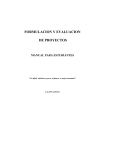 FORMULACION Y EVALUACION DE PROYECTOS MANUAL PARA ESTUDIANTES "Es difícil adivinar o prever el futuro, es mejor inventarlo" A.G.VIVALLO P. FORMULACION Y EVALUACION DE PROYECTOS MANUAL PARA ESTUDIANTES 2 INDICE DE CONTENIDOS CAPITULO I LAS IDEAS Y LOS PROYECTOS........................................ 9 1.1 SIN IDEAS NO HAY PROYECTOS................................................................ 9 1.2. LAS FUENTES DE FINANCIMIENTO Y LOS PROYECTOS ................. 12 1.3. LOS PROYECTOS SON UN COMPROMISO ETICO............................... 13 1.4. LA PLANIFICACION Y LOS PROYECTO................................................. 13 1.5 LOS SISTEMAS Y LOS PROYECTOS......................................................... 14 1.6 EFECTOS DE LOS PROYECTOS EN LOS SISTEMAS DE PRODUCCIÓN Y EN LAS FORMAS DE VIDA DE LOS AGRICULTORES 16 CAPITULO II EL EMPRESARIO Y EL PROYECTO ........................... 18 2.1. EL EMPRESARIO ........................................................................................... 18 2.2.EL PRODUCTO: BIEN O SERVICIO .......................................................... 18 2.3. BENEFICIOS DEL PROYECTO ................................................................... 19 CAPITULO III ETAPAS Y CONTENIDOS DEL PROYECTO ............. 20 3.1. MANDA EL MERCADO................................................................................. 20 3.2. ETAPAS DE UN PROYECTO...................................................................... 20 3.3. DESCRIPCION DE ETAPAS Y CONTENIDOS ......................................... 21 CAPITULO IV LOS ESTUDIOS PREVIOS DEL PROYECTO ............. 24 4.1. INTRODUCCION ............................................................................................ 24 4.2. EMPRESAS EXISTENTES, TAMAÑO, TIPO DE ESTRUCTURA EMPRESARIAL ...................................................................................................... 25 4.3. ESTUDIOS COMERCIALES EXISTENTES, ELEMENTOS DEL MERCADO, CONSUMIDORES Y FORMAS DE VENTA ............................... 26 4.4. PROCESO PRODUCTIVO, TECNOLOGIAS USADAS Y EXISTENTES .................................................................................................................................... 28 4.5. MATERIA PRIMA E INSUMOS Y PROVEEDORES ................................ 30 4.6. FUERZA DE TRABAJO ............................................................................... 31 4.7. ESPACIO NECESARIO, INFRAESTRUCTURA Y EQUIPOS............... 32 A.G. VIVALLO P. FORMULACION Y EVALUACION DE PROYECTOS MANUAL PARA ESTUDIANTES 3 4.8. LOCALIZACION............................................................................................. 33 4.9. LEGISLACION Y RESTRICCIONES AMBIENTALES........................... 34 4.10. FUENTES DE FINANCIAMIENTO............................................................ 35 4.11. ASISTENCIA TECNICA DISPONIBLE ..................................................... 35 4.12. MARCO INSTITUCIONAL Y APOYOS DEL GOBIERNO................... 35 CAPITULO V LOS MERCADOS Y LA COMERCIALIZACION......... 44 5.1. ALGUNOS ASPECTOS DEL MERCADO Y LA COMERCIALIZACION .................................................................................................................................... 44 5.2. LA DEMANDA Y LA OFERTA ..................................................................... 46 5.3. ELCOMPORTAMIENTO DE LOS PRECIOS ............................................ 52 5.4. TIPOS DE COMPETENCIA........................................................................... 52 5.5. EL ESTUDIO DE MERCADO........................................................................ 53 5.6. COMPONENTES DE UN ESTUDIO DE MERCADO ................................ 54 5.7. LAS ETAPAS DE UN ESTUDIO DE MERCADO ....................................... 57 5.7.1. DEFINICION DEL PRODUCTO ...................................................... 57 5.7.2 EL AREA DE MERCADO Y LOS CONSUMIDORES .................. 59 5.7.3. COLECTA DE INFORMACION DE LA OFERTA Y LA DEMANDA ....................................................................................................60 5.7.4. ANALISIS DE LAS INFORMACIONES DE LA DEMANDA Y DE LA 5.7.5. PROYECCIONES DE LA OFERTA Y LA DEMANDA.......... 62 5.7.5.1. CRITERIOS DE PROYECCION ............................................................. 63 5.7.5.2. TECNICAS DE GRUPOS.......................................................................... 63 5.7.5.3. PROYECCIÓN EN BASE AL USO DE TASAS .................................... 64 5.7.5.4. PROYECCION CON EL USO DE REGRESIÓN LINEAR SIMPLE66 5.7.6. ANALISIS CUALITATIVO DE MERCADO................................... 71 5.7.7. CONCLUSIONES DEL ESTUDIO DE MERCADO ....................... 72 EJEMPLO DE ESTUDIO DE MERCADEO Y MARKETING......................... 74 CAPITULO VI EL ESTUDIO TECNICO .................................................. 85 6.1. INTRODUCCION ............................................................................................ 85 6.2. TAMAÑO Y ESCALA DEL PROYECTO .................................................... 85 CAPACIDAD INSTALADA Y USO ESTACIONAL............................................ 87 6.3. LOS COSTOS Y LOS PROYECTOS ............................................................ 88 6.4. ECONOMIAS DE ESCALA TECNOLOGICAS Y DE INVERSION Y COSTOS ................................................................................................................... 92 A.G. VIVALLO P. FORMULACION Y EVALUACION DE PROYECTOS MANUAL PARA ESTUDIANTES 4 6.5. PROCESOS PRODUCTIVOS ....................................................................... 95 6.6. EL PRODUCTO Y LA COMPETITIVIDAD ............................................ 101 6.7. MATERIAS PRIMAS E INSUMOS............................................................ 103 6.8. MAQUINAS Y EQUIPOS ............................................................................. 107 6.9. OBRAS DE INFRAESTRUCTURA ...........................