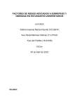 FACTORES DE RIESGO ASOCIADOS A SOBREPESO Y OBESIDAD EN ESTUDIANTES UNIVERSITARIOS AUTORES Fátima Irasema Marcial Quimé (18-23674) Ana Paola Martínez Salinas (17-21043) Yiye Jair Padilla (19-24166) FECHA 04 de Abril de 2022 RESUMEN Introducción: Para el 2016, 1 900 millones de personas de 18 años padecían sobrepeso u obesidad, es en este periodo donde existen dificultades para mantener un estilo de vida saludable, exponiéndose al desarrollo de diversas enfermedades. 1 Justificación: Identificar factores de riesgo en estudiantes universitarios con sobrepeso u obesidad. Objetivo: Determinar las causas principales para que universitarios presenten esta condición Método: Seleccionamos a 20 participantes de la División de Ciencias de la Salud de la Universidad de Quintana Roo y se aplicó un cuestionario de frecuencias de consumo de alimentos y estilo de vida. Resultados: Se reportó peso normal en un 35% de los participantes, sobrepeso en un 45% y obesidad en un 20%. En comparación con los normopeso, los sobrepesos y obesos se caracterizaron por referir un mayor consumo de comida chatarra fuera de casa, mayor consumo de comida de baja calidad nutricional entre una clase y otra, y la presencia de hábitos de alcoholismo y tabaquismo. Discusión/ conclusiones: Al comparar con otros estudios, los estudiantes comparten un IMC elevado debido a malos hábitos alimentarios, sedentarismo, producto del estilo de vida poco organizado. Es importante educar e implementar acciones para proteger a esta población potencialmente productiva. Palabras clave: Sobrepeso, obesidad, universitarios, factores de riesgo, alimentación, sedentarismo. INTRODUCCIÓN Ingresar a la universidad implica cambios en diferentes aspectos de la vida de los estudiantes que repercuten en el estado nutricional y pueden condicionar la aparición de sobrepeso y obesidad. Desde antes de la pandemia, los universitarios por su recargada labor académica mostraban una alta tendencia a padecer sobrepeso y, además de alto riesgo cardiovascular y metabólico, tiempo, más tarde durante el confinamiento, la problemática aumentó dentro de la población en general. 2 Se ha definido la obesidad como una enfermedad crónica que se caracteriza por un aumento en la grasa corporal y que presenta un riesgo para diversos trastornos. En nuestro país, estudios han reportado una prevalencia de sobrepeso y obesidad combinada de 31.6 % y 45.2% entre la comunidad universitaria. Sin embargo, hay un grupo reducido de estudiantes comprometidos en seguir hábitos saludables quienes mantienen un Índice de Masa Corporal normal. Según estudios 3 4,5 registrados antes del 2020, los universitarios no estaban exentos de manifestar enfermedades relacionadas con el peso. La obesidad representa un problema mayor para la salud pública en todo el mundo. Como se ha documentado es resultado de un juego de múltiples factores sociales, económicos y ambientales. En el estudio de distintas regiones, se encontró que tanto hombres como mujeres presentaban por igual conductas poco favorables y perjudiciales para su propia salud, el 74% aumentó la ingesta de alcohol durante su carrera, 54% se mantenía físicamente inactivo a causa de largas jornadas de estudio, 9.9% solía consumir tabaco y un 100% de los participantes con riesgo cardiovascular por el incremento de peso. Estas alarmantes cifras epidemiológicas ponen de manifiesto descifrar los factores que conllevan al alto IMC en estudiantes universitarios. Por ser un tema de gran interés actual, existen diversos estudios que tratan de detectar estos factores. Se ha reportado en distintos estudios que el consumo de tabaco, baja actividad física, consumo de comidas altamente calóricas y factores psicológicos como estrés postraumático, abuso físico en la infancia entre otros, forman parte de factores de riesgo para el desarrollo de sobrepeso/obesidad en universitarios. La Universidad de Quintana Roo es una institución educativa del estado. Por las 17 licenciaturas que se ofrecen en el campus Chetumal, se reciben a alumnos de distintas regiones de la Península y del extranjero para continuar con sus estudios superiores, entre las carreras más demandadas se encuentran las del área de la salud. En el año 2019, Unidad Académica Chetumal recibió 799 alumnos de nuevo ingreso y contabilizó un total de 5901 de estudiantes en su matrícula. Un pequeño porcentaje de la matrícula corresponde a la División de Ciencias de la Salud (DCS). Debido a las exigencias de las carreras de dicha División, todos los estudiantes deben adaptarse al nuevo modo de vida y cumplir con todas las actividades académicas impuestas. Los alumnos se ven obligados a priorizar unas tareas sobre otras, muchas veces los lleva a restarle tiempo al cuidado de su salud física, descuidando su alimentación, higiene del sueño, horas recreativas, etc. Con la problemática expuesta, el objetivo de esta investigación será conocer el estilo de vida de los estudiantes de la DCS que son causa de problemas relacionados con el peso. 6 6 7 8 8,9,10,11,12 13 MATERIAL Y MÉTODOS Participantes Los participantes fueron estudiantes universitarios de la DCS cuyas edades estaban entre los 21 y 30 años, que cursan el séptimo semestre de la licenciatura en medicina. El muestreo fue por conveniencia vía WhatsApp. El tamaño de la muestra fue de 16 personas, basada en la fórmula de tamaño muestral para poblaciones finitas (N=20) con un nivel de confianza de 90% y un margen de error de 10%. La solicitud de realizarles la encuesta fue por petición y aceptaron dando su consentimiento. Material o instrumentos: Una computadora Encuesta en Google Forms Diseño El diseño de estudio tiene un enfoque cuantitativo observacional transversal de correlacionales-causales. Descripción de variables: Universitarios, obesidad y sobrepeso, normopeso Procedimiento Se investigó el número total de alumnos del grupo, el cual son 20, a partir de ese dato se gen