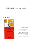 1 Estética de la creación verbal M.M. Bajtín Siglo veintiuno editores Traducción de Tatiana Bubnova Primera edición en español, 1982 Octava edición en español, 1998 Primera edición en ruso, 1979 Título original: éstetika slovesnogo tvorchestva Este material se utiliza con fines exclusivamente didácticos 2 ÍNDICE PRÓLOGO DEL COMPILADOR ................................................................................................ 9 ARTE Y RESPONSABILIDAD ................................................................................................. 11 AUTOR Y PERSONAJE EN LA ACTIVIDAD ESTÉTICA..................................................... 13 La actitud del autor hacia el héroe, 13; La forma espacial del personaje, 28; La totalidad temporal del héroe, 92; El héroe como totalidad de sentido, 123; El problema del autor, 164; Notas aclaratorias, 181 DEL LIBRO “PROBLEMAS DE LA OBRA DE DOSTOIEVSKI”........................................ 191 Prefacio, 191; Del capítulo “Funciones del argumento de aventuras en las obras de Dostoievski”, 192; Del capítulo “El diálogo en Dostoievski”, 194; Notas aclaratorias, 197 LA NOVELA DE EDUCACIÓN Y SU IMPORTANCIA EN LA HISTORIA DEL REALISMO...................................................................................... 200 Hacia una tipología histórica de la novela, 200; El planteamiento del problema; la novela de educación, 210; Tiempo y espacio en las novelas de Goethe, 216 EL PROBLEMA DE LOS GÉNEROS DISCURSIVOS ......................................................... 248 Planteamiento del problema y definición de los géneros discursivos, 248; El enunciado como unidad de la comunicación discursiva. Diferencia entre esta unidad y las unidades de la lengua (palabra y oración), 256; Notas aclaratorias, 290 El PROBLEMA DEL TEXTO EN LA LINGÜÍSTICA, LA FILOLOGÍA Y OTRAS CIENCIAS HUMANAS. ENSAYO DE ANÁLISIS FILOSÓFICO ...................... 294 PARA UNA REELABORACIÓN DEL LIBRO SOBRE DOSTOIEVSKI ............................. 324 Notas aclaratorias, 343 RESPUESTA A LA PREGUNTA HECHA POR LA REVISTA “NOVY MIR” .................... 346 Nota aclaratorias, 353 DE LOS APUNTES DE 1970-1971.......................................................................................... 354 Notas aclaratorias, 378 HACIA UNA METODOLOGÍA DE LAS CIENCIAS HUMANAS ....................................... 381 Notas aclaratorias, 393 3 EL PROBLEMA DE LOS GÉNEROS DISCURSIVOS 1. PLANTEAMIENTO DEL PROBLEMA Y DEFINICIÓN DE LOS GÉNEROS DISCURSIVOS Las diversas esferas de la actividad humana están todas relacionadas con el uso de la lengua. Por eso está claro que el carácter y las formas de su uso son tan multiformes como las esferas de la actividad humana, lo cual, desde luego, en nada contradice a la unidad nacional de la lengua. El uso de la lengua se lleva a cabo en forma de enunciados (orales y escritos) concretos y singulares que pertenecen a los participantes de una u otra esfera de la praxis humana. Estos enunciados reflejan las condiciones específicas y el objeto de cada una de las esferas no sólo por su contenido (temático) y por su estilo verbal, o sea por la selección de los recursos léxicos, fraseológicos y gramaticales de la lengua, sino, ante todo, por su composición o estructuración. Los tres momentos mencionados -el contenido temático, el estilo y la composición- están vinculados indisolublemente en la totalidad del enunciado y se determinan, de un modo semejante, por la especificidad de una esfera dada de comunicación. Cada enunciado separado es, por supuesto, individual, pero cada esfera del uso de la lengua elabora sus tipos relativamente estables de enunciados, a los que denominamos géneros discursivos. La riqueza y diversidad de los géneros discursivos es inmensa, porque las posibilidades de la actividad humana son inagotables y porque en cada esfera de la praxis existe todo un repertorio de géneros discursivos que se diferencia y crece a medida de que se desarrolla y se complica la esfera misma. Aparte hay que poner de relieve una extrema heterogeneidad de los géneros discursivos (orales y escritos). Efectivamente, debemos incluir en los géneros discursivos tanto las breves réplicas de un diálogo cotidiano (tomando en cuenta el hecho de que es muy grande la diversidad de los tipos del diálogo cotidiano según el tema, situación, número de participantes, etc.) como un relato (relación) cotidiano, tanto una carta (en todas sus diferentes formas) como una orden militar, breve y estandarizada; asimismo, allí entrarían un decreto extenso y detallado, el repertorio bastante variado de los oficios burocráticos (formulados generalmente de acuerdo a un estándar), todo un universo de declaraciones públicas (en un sentido amplio: las sociales, las políticas); pero además tendremos que incluir las múltiples manifestaciones científicas, así como todos los géneros literarios (desde un dicho hasta una novela en varios tomos). Podría parecer que la diversidad de los géneros discursivos es tan grande que no hay ni puede haber un solo enfoque para su estudio, porque desde un mismo ángulo se estudiarían fenómenos tan heterogéneos como las réplicas cotidianas constituidas por una sola palabra y como una novela en muchos tomos, elaborada artísticamente, o bien una orden militar, estandarizada y obligatoria hasta por su entonación, y una obra lírica, profundamente individualizada, etc. Se podría creer que la diversidad funcional convierte los rasgos comunes de los géneros discursivos en algo abstracto y vacío de significado. Probablemente con esto se explica el hecho de que el problema general de los géneros discursivos jamás se haya planteado. Se han estudiado, principalmente, los géneros literarios. Pero desde la antigüedad clásica hasta nuestros días estos géneros se han examinado dentro de su especificidad literaria y artística, en relación con sus diferencias