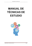 DEPARTAME NTO DE ORIENTA CIÓN MANUAL DE TÉCNICAS DE ESTUDIO DOSSIE R HÁB ITOS Y TÉCNICAS DE ES TUDIO Página 1 DEPARTAME NTO DE ORIENTA CIÓN ÍNDICE TEMA Página 1. Cuestionario técnicas de estudio 3 2. Claves para una buena utilización de la memoria 5 3. Factores ambientales en el estudio 8 4. Un método de estudio (EPLERMeR) 10 5. Velocidad y comprensión lectoras 11 6. Cómo tomar apuntes 15 7. La lectura 17 8. El subrayado 20 9. El esquema 24 10. El resumen 29 11. Los mapas conceptuales 31 12. Los trabajos monográficos 34 13. Cómo tener éxito en los exámenes 27 DOSSIE R HÁB ITOS Y TÉCNICAS DE ES TUDIO Página 2 DEPARTAME NTO DE ORIENTA CIÓN 1. CUESTIONARIO DE AUTORREFLEXIÓN: ¿SABES ESTUDIAR? Rodea con un círculo la contestación SÍ o NO que mejor indique lo que haces. LUGAR 1. Tienes un sitio fijo para estudiar .................................................................... SÍ NO 2. Estudias en una habitación alejada de ruidos, TV, radio, etc ....................... SÍ NO 3. Tienes luz suficiente ....................................................................................... SÍ NO 4. Cuando te pones a estudiar, tienes a mano todo lo que necesitas .............. SÍ NO TIEMPO 5. Tienes un horario fijo de estudio .................................................................... SÍ NO 6. Divides tu tiempo entre las asignaturas que tienes que estudiar .................. SÍ NO 7. Estudias como mínimo cinco días por semana ............................................ SÍ NO 8. En tu plan de estudios, incluyes ratos de descanso...................................... SÍ NO ATENCIÓN 9. Miras al profesor cuando explica ................................................................... SÍ 10. Tomas nota de las lecciones señaladas para estudiar y de los ejercicios NO a realizar ......................................................................................................... SÍ NO 11. Estás atento durante toda la explicación ....................................................... SÍ NO 12. Preguntas cuando no entiendes alguna cuestión .......................................... SÍ NO 13. Participas bien en la actividad común de la clase ......................................... SÍ NO APUNTES 14. Indicas la fecha en tus hojas de apuntes ....................................................... SÍ NO 15. Tienes tus apuntes divididos por materias..................................................... SÍ NO 16. Anotas las palabras difíciles, tareas especiales, lo que no comprendes ...... SÍ NO DOSSIE R HÁB ITOS Y TÉCNICAS DE ES TUDIO Página 3 DEPARTAME NTO DE ORIENTA CIÓN 17. Revisas y completas los apuntes ................................................................... SÍ NO 18. Subrayas las ideas importantes ..................................................................... SÍ NO ESTUDIOS 19. Haces una primera lectura de tus notas, cuando preparas un tema ............ SÍ NO 20. Tienes facilidad para encontrar las ideas básicas de lo que lees ................. SÍ NO 21. Cuando dudas del significado, ortografía o pronunciación de una palabra, consultas el diccionario ........................................................ SÍ NO 22. Señalas lo que no entiendes .......................................................................... SÍ NO 23. Anotas los datos importantes o difíciles de recordar ..................................... SÍ NO 24. Cuando estudias, tratas de resumir mentalmente ......................................... SÍ NO 25. Empleas algún sistema especial para recordar datos ................................... SÍ NO 26. Después de aprender una lección, la repasas .............................................. SÍ NO 27. Pides ayuda cuando encuentras alguna dificultad ........................................ SÍ NO 28. Llevas al día las asignaturas y los ejercicios ................................................. SÍ NO 29. Cuando te sientas a estudiar, te pones rápidamente a trabajar.................... SÍ NO 30. Cuando estudias, te marcas las tareas y las terminas .................................. SÍ NO 31. Ante un dato geográfico desconocido, consultas los mapas ........................ SÍ NO 32. Haces esquema de cada lección ................................................................... SÍ NO 33. En los esquemas, incluyes la materia del libro y de los apuntes tomados en clase........................................................................................................... SÍ NO 34. Empleas el menor número de palabras para hacer los esquemas ............... SÍ NO 35. Cuando una lección es difícil, la organizas a través de esquemas y guiones para hacerla más comprensible ..................................................................... SÍ NO 36. Destacan tus esquemas las ideas principales ............................................... SÍ NO 37. Consultas otros libros además del texto ........................................................ SÍ NO 38. Antes de redactar un trabajo, haces un guión ............................................... SÍ NO 39. Compruebas ortografía y limpieza de lo que escribes .................................. SÍ NO 40. Cuando haces un trabajo, pones el índice, un resumen del contenido y una 41. reseña bibliográfica ........................................................................................ SÍ NO Te es fácil concentrarte cuando estudias ...................................................... SÍ NO DOSSIE R HÁB ITOS Y TÉCNICAS DE ES TUDIO Página 4 DEPARTAME NTO DE ORIENTA CIÓN 42. Tienes preocupaciones ajenas al estudio que te perturban y disminuyen tu rendimiento ................................................................................................. SÍ CORRECCIÓN E INTERPRETACIÓN Sin contar la pregunta 42, cuenta todas las respuestas SÍ que has dado: TOTAL: Si la suma es de 0 a 25 = Si la suma