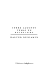 S O B R E A L G U N O S T E M A S E N B A U D E L A I R E W A L T E R B E N J A M I N Ediciones elaleph.com Editado por elaleph.com 1999 – Copyright www.elaleph.com Todos los Derechos Reservados SOBRE ALGUNOS TEMAS EN BAUDELAIRE I Baudelaire confiaba en lectores a los que la lectura de la lírica pone en dificultades. A tales lectores se dirige el poema inicial de las Fleurs du mal. Con la fuerza de voluntad de éstos, así como con su capacidad de concentración, no se va lejos; tales lectores prefieren los placeres sensibles y están entregados al spleen, que anula el interés y la receptividad. Causa sorpresa encontrar un lírico que se dirija a semejante público, el más ingrato. En seguida se presenta una explicación: Baudelaire deseaba ser comprendido, dedica su libro a quienes se le asemejan. La poesía dedicada al lector termina apostrofando a éste: «Hypocrite lecteur, - mon semblable, - mon frère!» Pero la relación resulta más fecunda en consecuencias si se la invierte y se dice: Baudelaire ha escrito un libro 3 WALTER BENJAMIN que tenía de entrada escasas perspectivas de éxito inmediato. Confiaba en un lector del tipo del descrito en el poema inicial. Y se ha comprobado que su mirada era de gran alcance. El lector al cual se dirigía le sería proporcionado por la época siguiente. Que tal sea la situación, que, en otros términos, las condiciones para la recepción de poesías líricas se hayan tornado menos propicias, es cosa probada al menos por tres hechos. En primer término, el lírico no es considerado más como el poeta en sí. No es ya más «el vate», como aún lo era Lamartine; ahora ha entrado en un género. (Verlaine hace que esta especialización se vuelva tangible; Rimbaud es ya un esotérico que, ex offcio, mantiene al público lejos de su propia obra.) Un segundo hecho: después de Baudelaire la poesía lírica no ha registrado ningún éxito de masas. (La lírica de Hugo tuvo aún, al aparecer, una vasta resonancia. En Alemania el Buch der Lieder marca la línea limítrofe.) De ello puede deducirse un tercer elemento: el público se ha vuelto más frío incluso hacia aquella poesía lírica del pasado que le era conocida. El lapso en cuestión puede datarse en la segunda mitad del siglo XIX. En el mismo lapso la fama de las Fleurs du mal se ha extendido sin inte4 SOBRE ALGUNOS TEMAS EN BAUDELAIRE rrupción. El libro que había confiado en los lectores más extraños y que al principio había encontrado bien pocos de ellos se ha convertido en el curso de decenios en un clásico, incluso en uno de los más editados. Puesto que las condiciones de recepción para la poesía lírica se han vuelto más pobres puede deducirse que la poesía lírica conserva sólo en forma excepcional el contacto con los lectores. Y ello podría deberse a que la experiencia de los lectores se ha transformado en su estructura. Esta conjetura será quizás aprobada, pero nos veremos en dificultades para definir dicha transformación. En este campo deberemos interrogar a la filosofía. Y en la filosofía hallaremos un hecho sintomático. Desde fines del siglo pasado, la filosofía ha realizado una serie de intentos para adueñarse de la «verdadera» experiencia, en contraste con la que se sedimenta en la existencia controlada y desnaturalizada de las masas civilizadas. Se acostumbra a encuadrar estas tentativas bajo el concepto de filosofía de la vida. Naturalmente, esos intentos no parten de la existencia del hombre en sociedad, sino de la poesía, también de la naturaleza y, con preferencia, de la época mítica. La obra de Dilthey Vida y poesía es una de las 5 WALTER BENJAMIN primeras en este orden. La serie concluye con Klages y con Jung, quien se ha entregado al fascismo. Como un monumento eminente, se destaca entre esta literatura la obra temprana de Bergson Matière et mémoire. Este libro conserva más que cualquier otro su relación con la investigación precisa. Está orientado por la biología. Su título dice por anticipado que en él se considera la estructura de la memoria como decisiva para la experiencia. En efecto, la experiencia es un hecho de tradición, tanto en la vida privada como en la colectiva. La experiencia no consiste principalmente en acontecimientos fijados con exactitud en el recuerdo, sino más bien en datos acumulados, a menudo en forma inconsciente, que afluyen a la memoria. Pero Bergson no se propone en modo alguno la especificación histórica de la mEmoria. Incluso rechaza toda determinación histórica de la experiencia. De tal suerte evita, sobre todo y esencialmente, tener que aproximarse a la experiencia de la cual ha surgido su misma filosofía o contra la cual, más bien, surgió su filosofía. Es la experiencia hostil, enceguecedora de la época de la gran industria. El ojo que se cierra ante esta experiencia afronta una experiencia de tipo complementario, como su imitación, por así decirlo, 6 SOBRE ALGUNOS TEMAS EN BAUDELAIRE espontánea. La filosofía de Bergson es una tentativa de especificar y fijar esa imitación. Por lo tanto la filosofía de Bergson reconduce indirectamente a la experiencia que afronta Baudelaire en forma directa en la figura de su «lector». 7 WALTER BENJAMIN II Matiére et mémoire define el carácter de la experiencia de la durée en forma tal que el lector debe decirse: sólo el poeta puede ser el sujeto adecuado de una experiencia semejante. Y ha sido en efecto un poeta quien ha sometido a prueba la teoría bergsoniana de la experiencia. Se puede considerar la obra de Proust, Á la recherche du temps perdu, como la tentativa de producir artificialmente, en las condiciones sociales actuales, la experiencia tal como la entiende Bergson. Pues sobre su génesis espontánea resultará siempre más difícil contar. Proust, por lo demás, no se sustrae en su obra a la discusión de este problema. Introduce de tal suerte un elemento nuevo, que contiene una crítica inmanente a Bergson. Este no deja de s