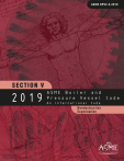 ASME BPVC.V-2019 SECTION V 2019 ASME Boiler and Pressure Vessel Code An International Code N on de st ruct iv e Exa min a t ion --`,``,``,,`,`,,````,`,``,,,`-`-`,,`,,`,`,,`--- Copyright ASME International (BPVC) Provided by IHS under license with ASME No reproduction or networking permitted without license from IHS Licensee=Khalda Petroleum/5986215001, User=Amer, Mohamed Not for Resale, 07/02/2019 13:29:23 MDT Markings such as “ASME,” “ASME Standard,” or any other marking including “ASME,” ASME logos, or the ASME Single Certification Mark shall not be used on any item that is not constructed in accordance with all of the applicable requirements of the Code or Standard. Use of ASME’s name or logos or of the ASME Single Certification Mark requires formal ASME certification; if no certification program is available, such ASME markings may not be used. (For Certification and Accreditation Programs, see https://www.asme.org/shop/certification‐accreditation.) Items produced by parties not formally possessing an ASME Certificate may not be described, either explicitly or implicitly, as ASME certified or approved in any code forms or other document. --`,``,``,,`,`,,````,`,``,,,`-`-`,,`,,`,`,,`--- Copyright ASME International (BPVC) Provided by IHS under license with ASME No reproduction or networking permitted without license from IHS Licensee=Khalda Petroleum/5986215001, User=Amer, Mohamed Not for Resale, 07/02/2019 13:29:23 MDT AN INTERNATIONAL CODE 2019 ASME Boiler & Pressure Vessel Code 2019 Edition July 1, 2019 V NONDESTRUCTIVE EXAMINATION ASME Boiler and Pressure Vessel Committee on Nondestructive Examination Two Park Avenue • New York, NY • 10016 USA --`,``,``,,`,`,,````,`, Copyright ASME International (BPVC) Provided by IHS under license with ASME No reproduction or networking permitted without license from IHS Licensee=Khalda Petroleum/5986215001, User=Amer, Mohamed Not for Resale, 07/02/2019 13:29:23 MDT Date of Issuance: July 1, 2019 This international code or standard was developed under procedures accredited as meeting the criteria for American National Standards and it is an American National Standard. The Standards Committee that approved the code or standard was balanced to assure that individuals from competent and concerned interests have had an opportunity to participate. The proposed code or standard was made available for public review and comment that provides an opportunity for additional public input from industry, academia, regulatory agencies, and the public-at-large. ASME does not “approve," "certify," “rate,” or “endorse” any item, construction, proprietary device, or activity. ASME does not take any position with respect to the validity of any patent rights asserted in connection with any items mentioned in this document, and does not undertake to insure anyone utilizing a standard against liability for infringement of any applicable letters patent, nor assume any such liability. Users of a code or standard are expressly advised that determination of the validity of any such patent rights, and the risk of infringement of such rights, is entirely their own responsibility. Participation by federal agency representative(s) or person(s) affiliated with industry is not to be interpreted as government or industry endorsement of this code or standard. ASME accepts responsibility for only those interpretations of this document issued in accordance with the established ASME procedures and policies, which precludes the issuance of interpretations by individuals. The endnotes and preamble in this document (if any) are part of this American National Standard. ASME Collective Membership Mark ASME Single Certification Mark "ASME" and the above ASME symbols are registered trademarks of The American Society of Mechanical Engineers. The Specifications published and copyrighted by the American Society for Testing and Materials are reproduced with the Society’s permission. --`,``,``,,`,`,,````,`,``,,,`-`-`,,`,,`,`,,`--- No part of this document may be reproduced in any form, in an electronic retrieval system or otherwise, without the prior written permission of the publisher. Library of Congress Catalog Card Number: 56-3934 Printed in the United States of America Adopted by the Council of The American Society of Mechanical Engineers, 1914; latest edition 2019. The American Society of Mechanical Engineers Two Park Avenue, New York, NY 10016-5990 Copyright © 2019 by THE AMERICAN SOCIETY OF MECHANICAL ENGINEERS All rights reserved Copyright ASME International (BPVC) Provided by IHS under license with ASME No reproduction or networking permitted without license from IHS Licensee=Khalda Petroleum/5986215001, User=Amer, Mohamed Not for Resale, 07/02/2019 13:29:23 MDT TABLE OF CONTENTS List of Sections . . . . . . . . . . . . . . . . . . . . . . . . . . . . . . . . . . . . . . . . . . . . . . . . . . . . . . . . . . . . . . . . . . . . . . . . . . . . . . Foreword . . . . . . . . . . . . . . . . . . . . . . . . . . . . . . . . . . . . . . . . . . . . . . . . . . . . . . . . . . . . . . . . . . . . . . . . . . . . . . . . . . . Statement of Policy on the Use of the ASME Single Certification Mark and Code Authorization in Advertising Statement of Policy on the Use of ASME Marking to Identify Manufactured Items . . . . . . . . . . . . . . . . . . . . . . Submittal of Technical Inquiries to the Boiler and Pressure Vessel Standards Committees . . . . . . . . . . . . . . . Personnel . . . . . . . . . . . . . . . . . . . . . . . . . . . . . . . . . . . . . . . . . . . . . . . . . . . . . . . . . . . . . . . . . . . . . . . . . . . . . . . . . . . ASTM Personnel . . . . . . . . . . . . . . . . . . . . . . . . . . . . . . . . . . . . . . . . . . . . . . . . . . . . . . . . . . . . . . . . . . . . . . . . . . . . . Summary of Changes . . . . . . . . . . . . . . . . . . . . . . . . . . . . . . . . . . . . . . . . . . . . . . . . . . . . . . . . . . . . . . . . . . . . . 