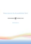 Observatorio De Accesibilidad Web Berdingune Documento elaborado por CTIC CT para el Gobierno Vasco. Todos los contenidos de esta obra pertenecen al Gobierno Vasco y están protegidos por los derechos de propiedad intelectual e industrial que otorga la legislación vigente. Su uso, reproducción, distribución, comunicación pública, puesta a disposición, transformación o cualquier otra actividad similar o análoga está totalmente prohibida, salvo en los casos que están explícitamente permitidos por la licencia bajo la que está publicada. Publicado bajo licencia Creative Commons Reconocimiento (by): Debe reconocer los créditos de la obra de la manera especificada por el autor o el licenciador (pero no de una manera que sugiera que tiene su apoyo o apoyan el uso que hace de su obra). Puede acceder a una copia de esta licencia en http://creativecommons.org/licenses/by/3.0/ Observatorio de Accesibilidad Web Gobierno Vasco Resumen Ejecutivo ........................................................................................................................................... 1 Accesibilidad ............................................................................................................................................ 1 Buenas Prácticas en diseño web ................................................................................................................. 2 Introducción ..................................................................................................................................................... 3 Accesibilidad Web ..................................................................................................................................... 3 Introducción ..................................................................................................................................... 3 WCAG 1.0 ....................................................................................................................................... 3 WCAG 2.0 ....................................................................................................................................... 3 Norma UNE ..................................................................................................................................... 4 Legislación ...................................................................................................................................... 4 Objetivo .................................................................................................................................................. 5 Metodología Técnica ................................................................................................................................. 5 Muestra ........................................................................................................................................... 6 Indicadores ...................................................................................................................................... 6 Herramientas .................................................................................................................................... 9 Evaluación y Valoración ................................................................................................................... 10 Análisis Estadístico .......................................................................................................................... 10 Interpretación de resultados y conclusiones ......................................................................................... 11 Resultados Observatorio ................................................................................................................................... 12 Accesibilidad Web ................................................................................................................................... 12 Valoración global ............................................................................................................................. 12 Distribución de la valoración por páginas ............................................................................................. 12 Distribución de la valoración por principio ............................................................................................ 12 Valoración por indicador ................................................................................................................... 13 Buenas Prácticas en Accesibilidad Web y Diseño ......................................................................................... 15 Imágenes decorativas en HTML ......................................................................................................... 16 Tamaño adecuado ........................................................................................................................... 16 Ausencia de enlaces rotos ................................................................................................................ 16 Longitud excesiva de los enlaces ....................................................................................................... 16 Ausencia de marcos ........................................................................................................................ 16 Alternativas de marcos ..................................................................................................................... 16 Hábitos desaconsejados ................................................................................................................... 16 Elementos con contenido .................................................................................................................. 17 Asociación de estilos ....................................................................................................................... 17 Uso de NOSCRIPT ............